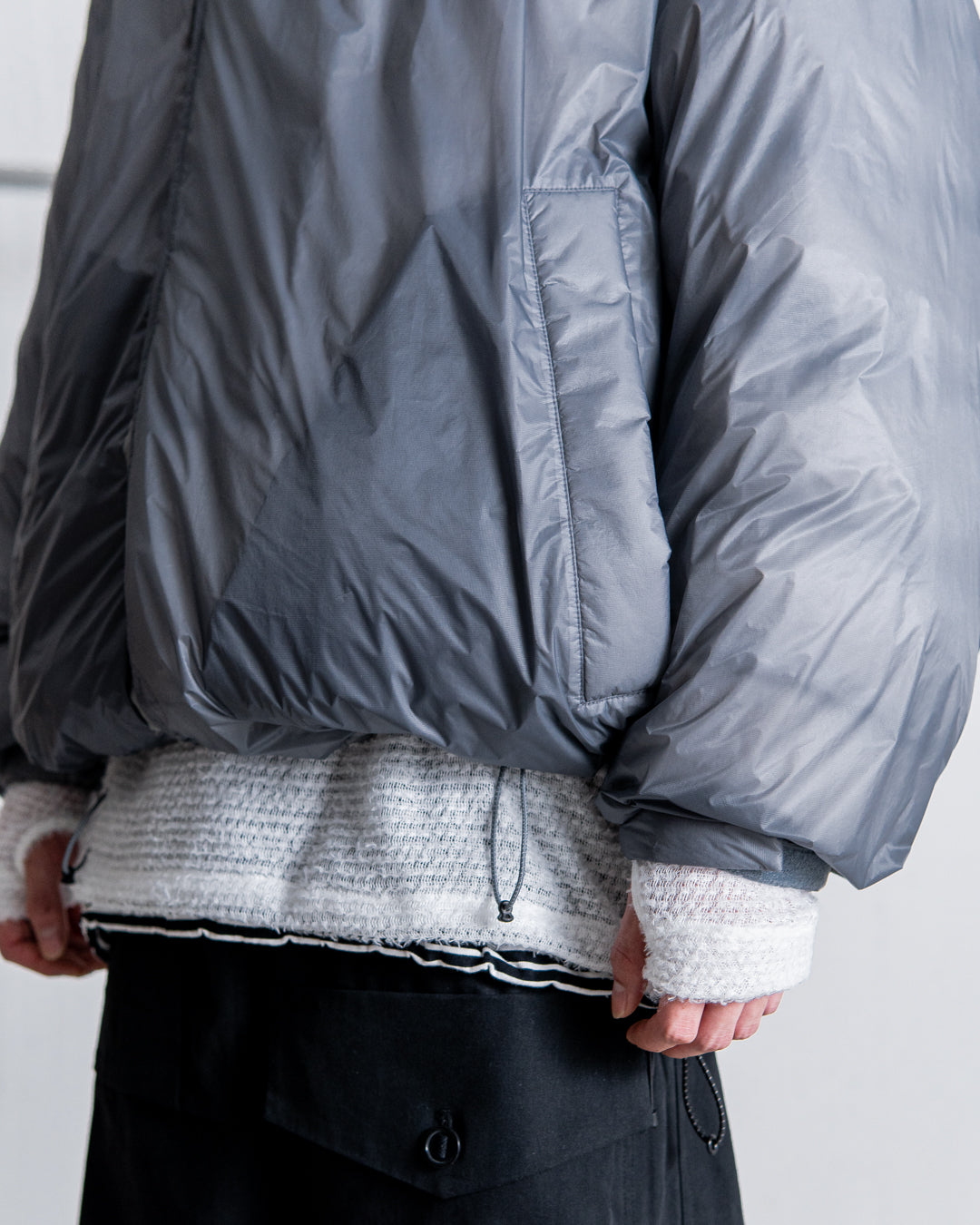 Y(dot) BY NORDISKISNESとのコラボレーション商品。Is-nessがオリジナルでデザイン・製作したダウンジャケット。寒さを防ぐ大きな襟、内側にはフード、内側には大きなポケット、左右にはベンチレーションを備え、機能的な仕上がりになっている。表面は撥水性に優れた超軽量ナイロン素材。シャープな質感と、快適でソフトな印象を与える表情が特徴。内部には保温性の高い最高級品として知られる700フィルパワーのクリスタルダウンを充填。