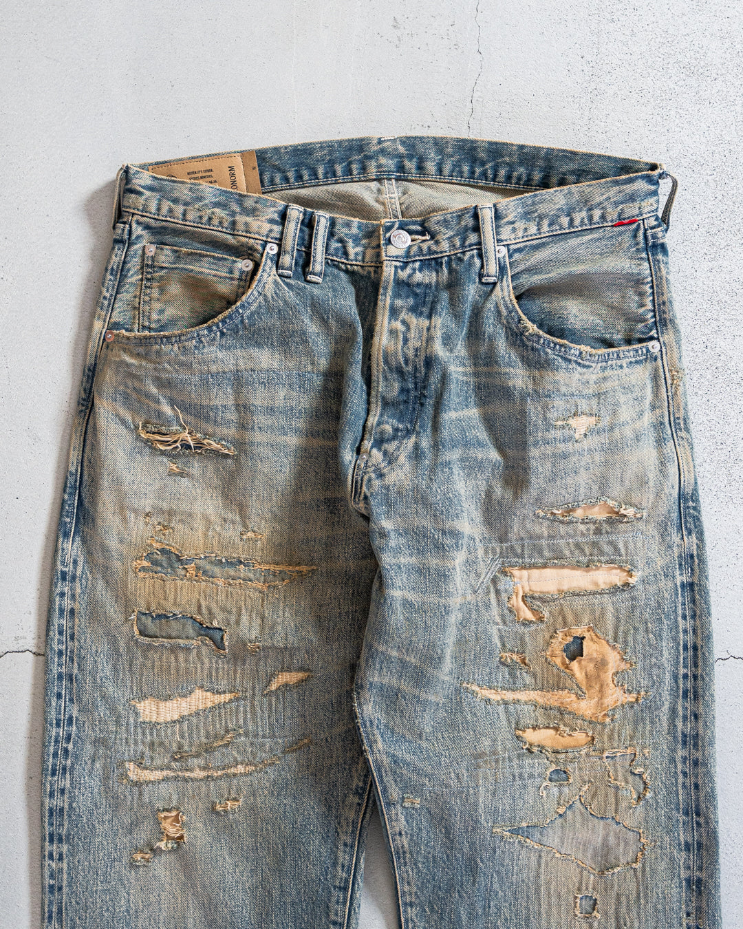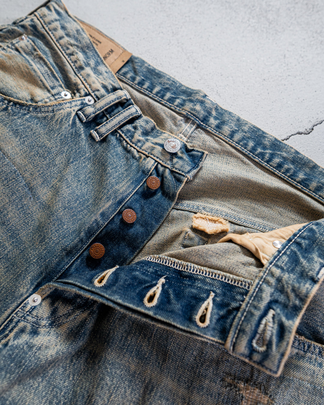 生地は12.5ozセルビッチデニム。旧シャトル織機にて時間をかけ、非効率により生み出されました。縦糸にはインディゴロープ染色。独特の味わい深い表情に。