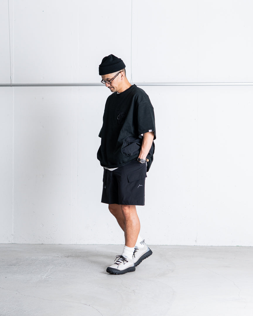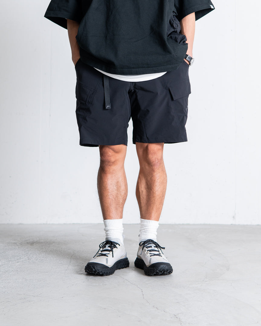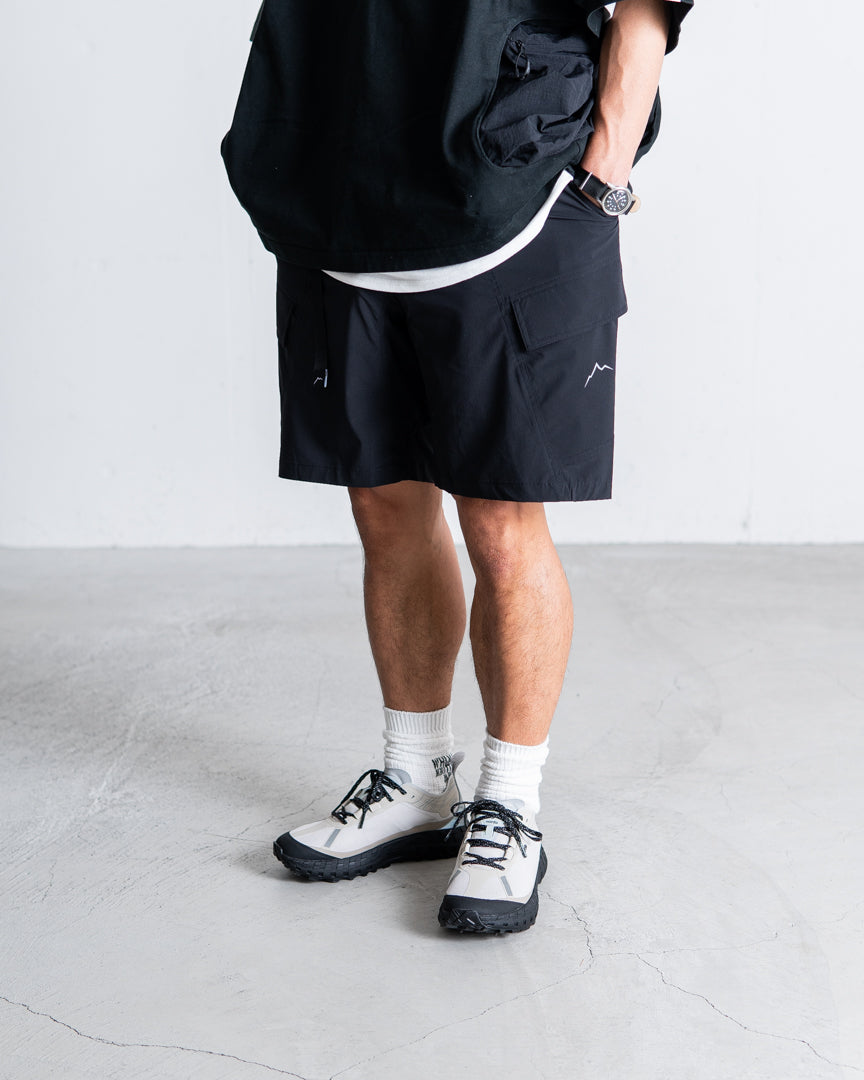 撥水コーティングも施され、街でも山でも使いやすい、CAYLらしい機能性とデザイン性を両立させたショートパンツです。