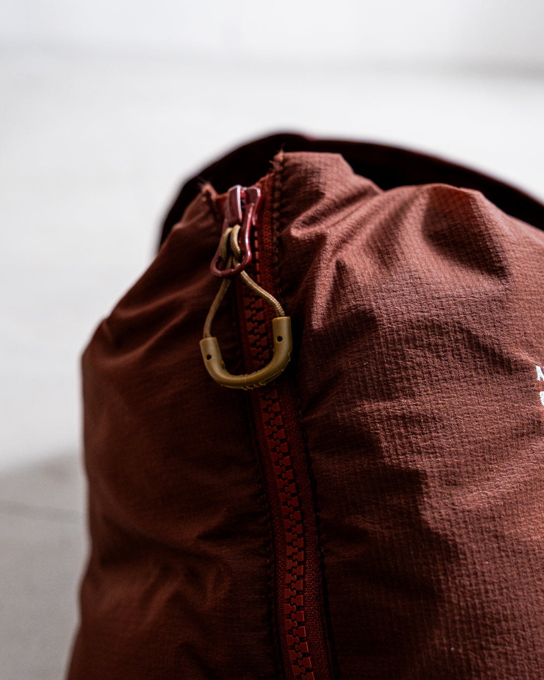 - 軽量ダウンを使用し、保温性と携帯性を両立