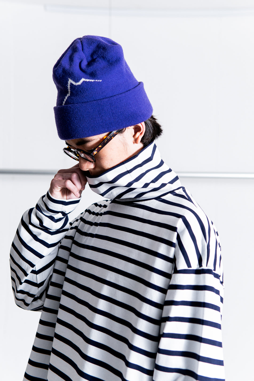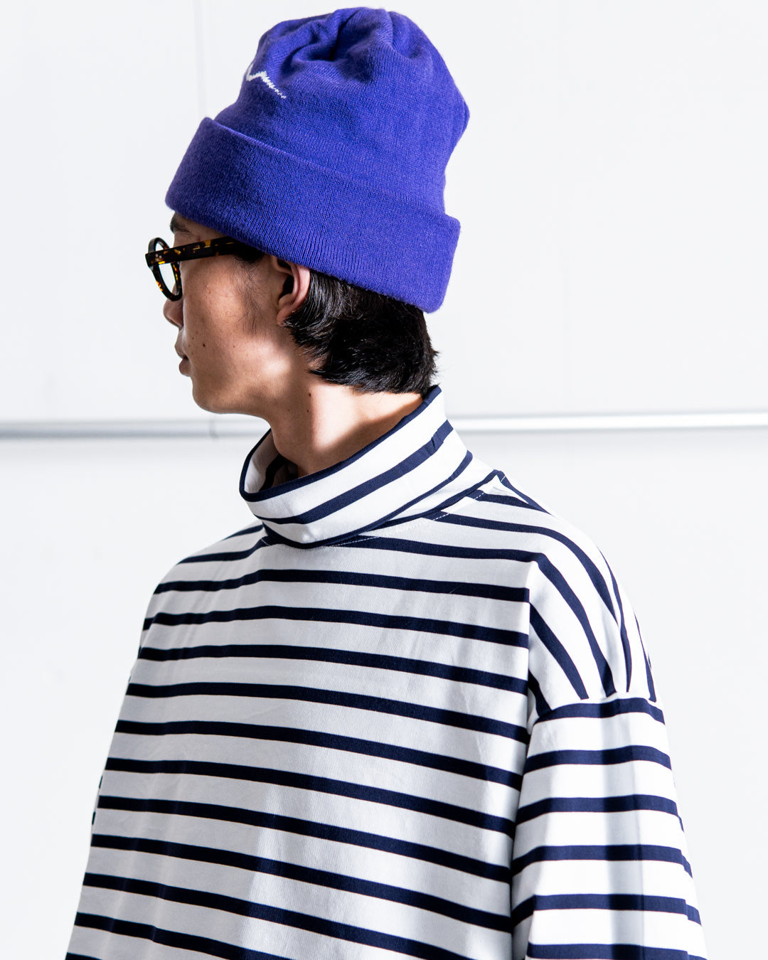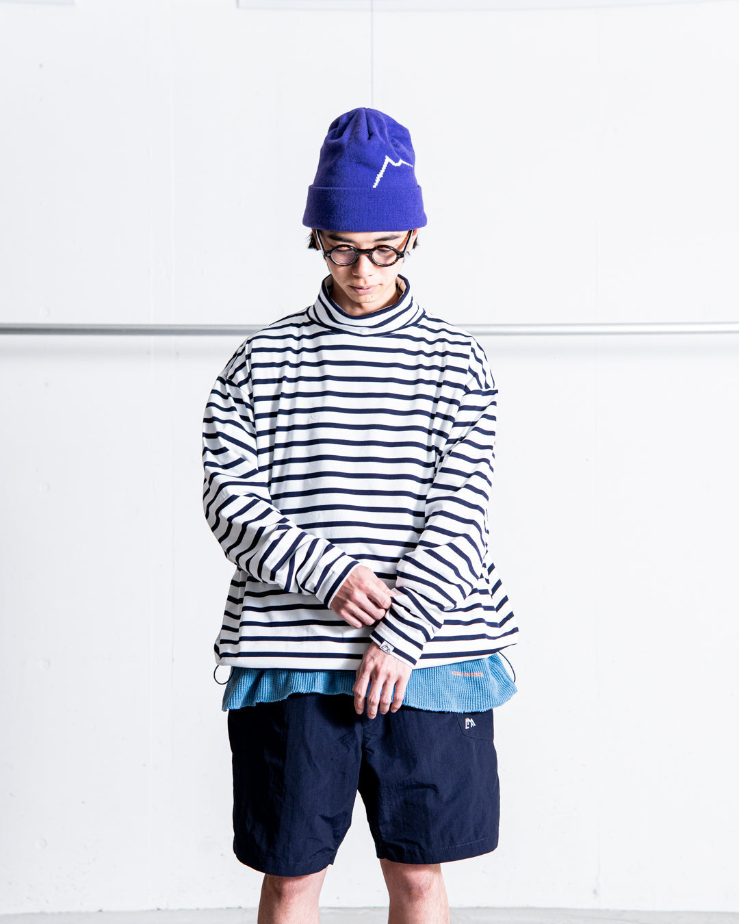 [MENS]モデル 身長169cm 体重53kg / 着用サイズ L / 着用カラー WHITE × NAVY