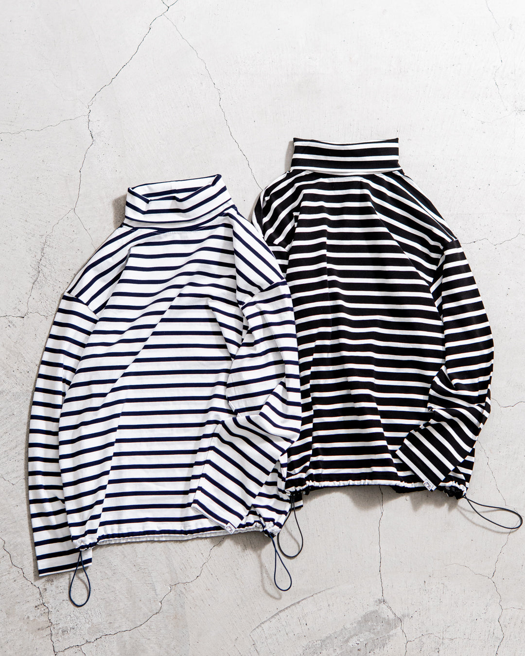 裾のドローコードは洗濯機で気を遣わず洗えるようゴムパーツを使用した。