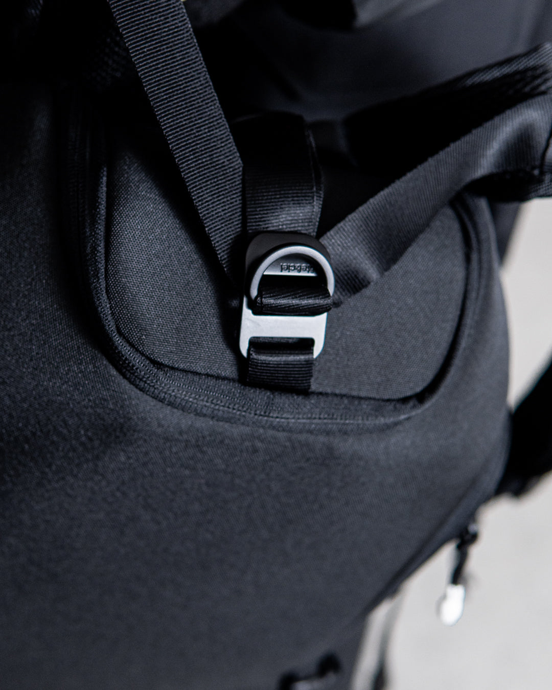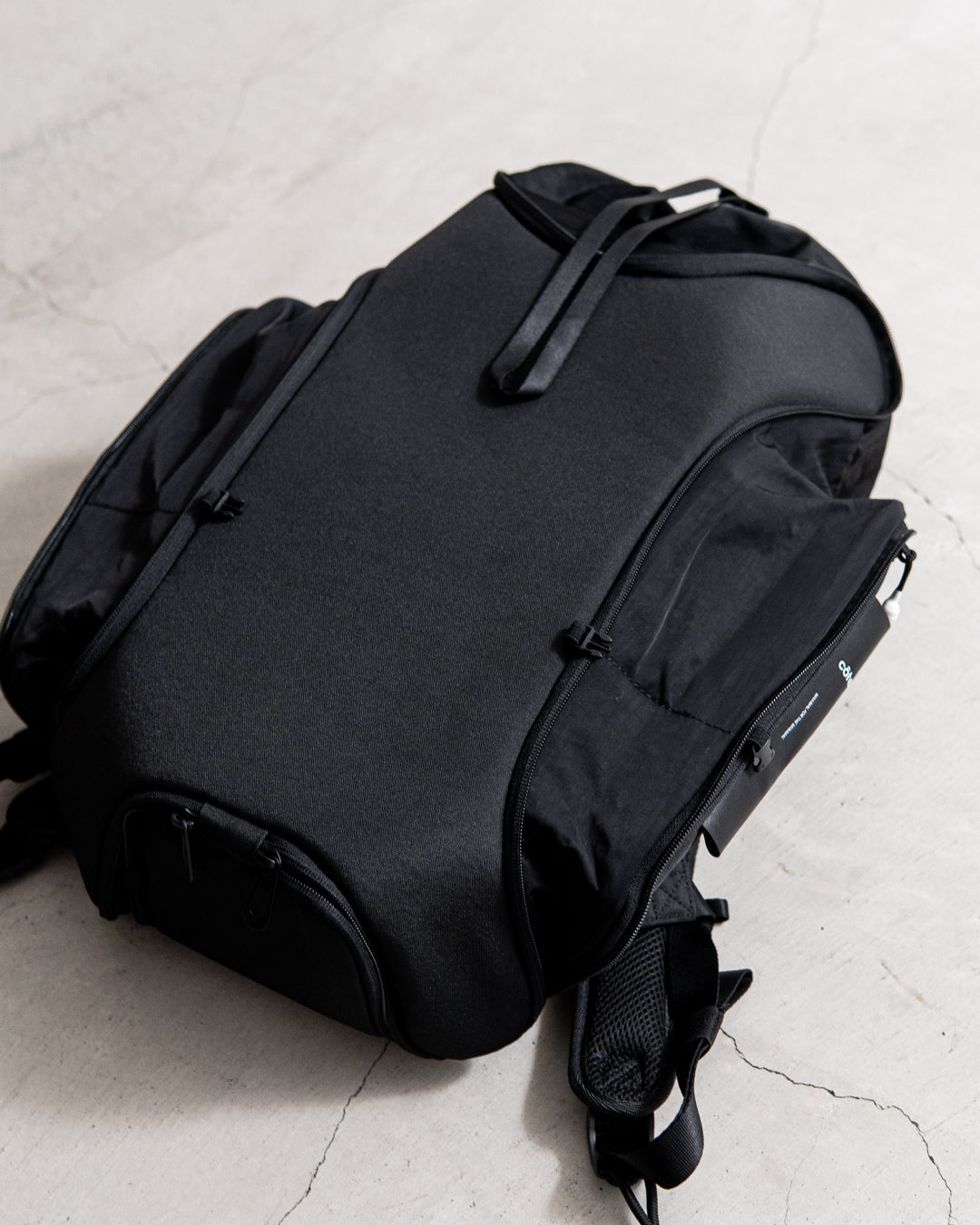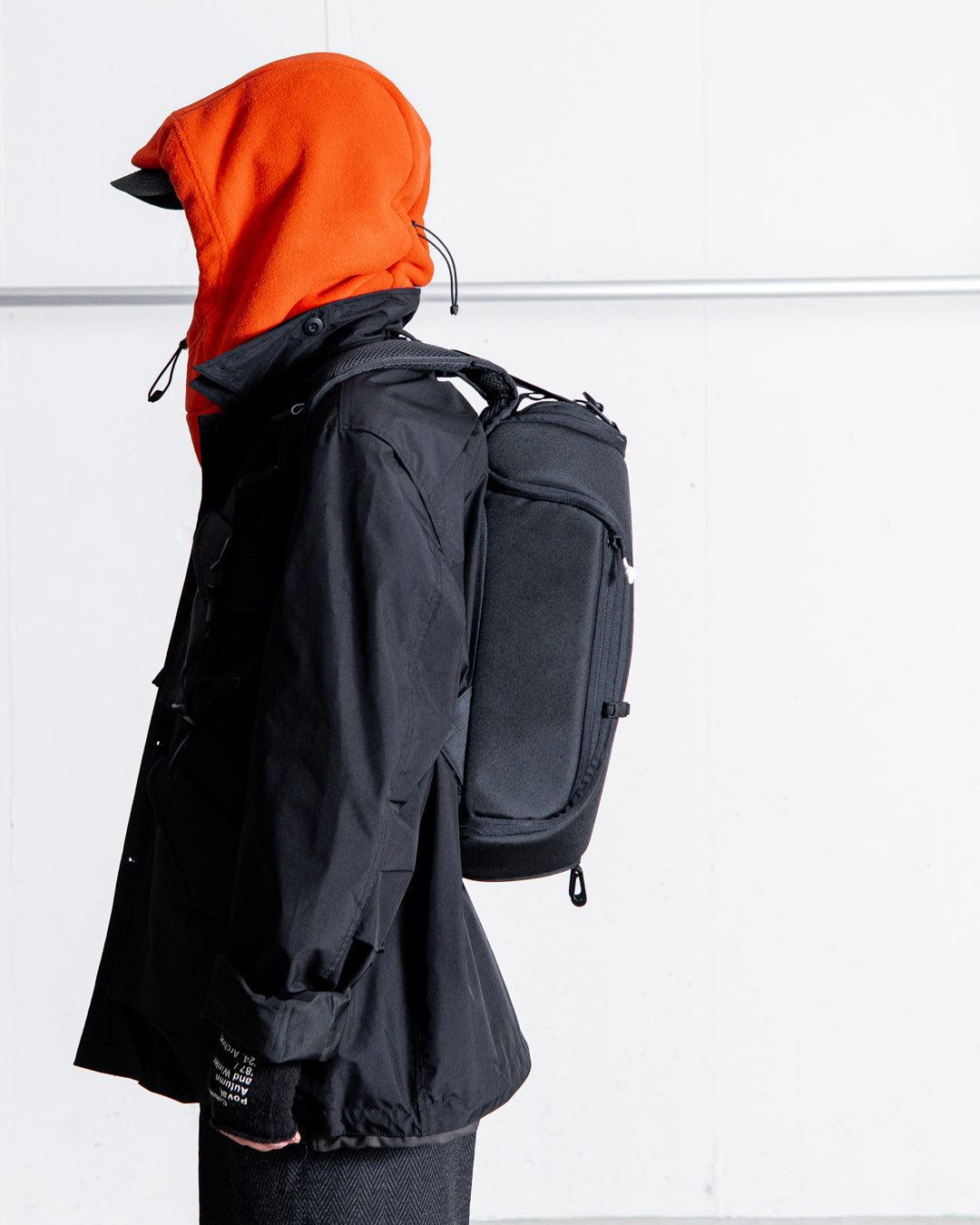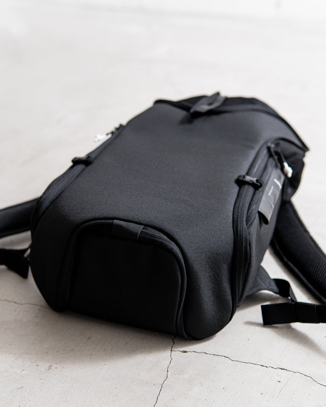 メインコンパートメントはバッグ上部の巾着となっており、ファスナーカバーで固定できます。