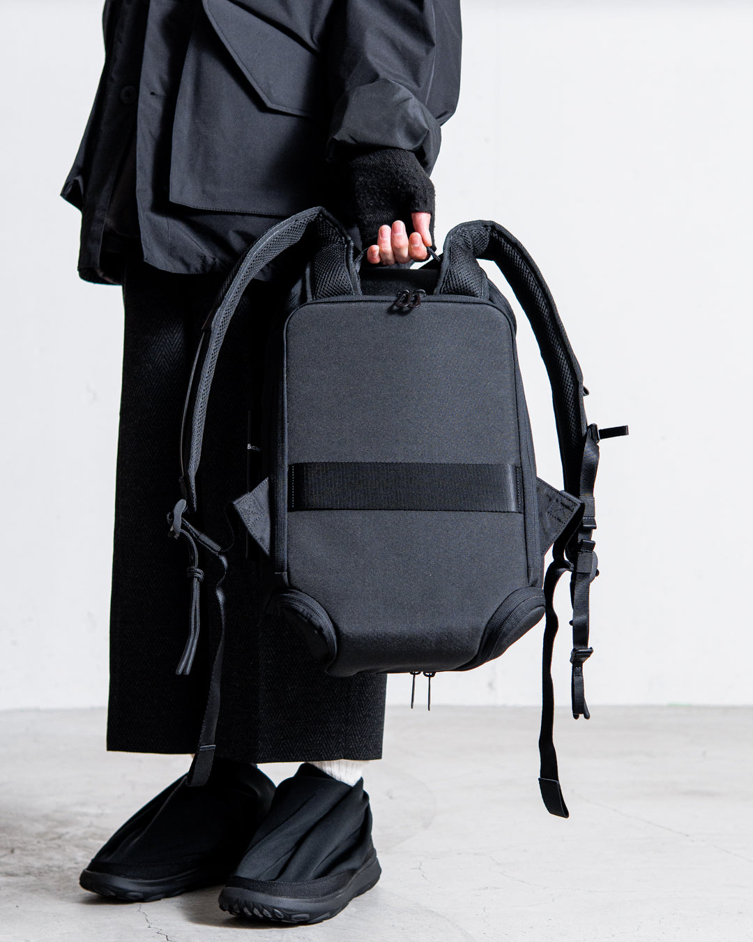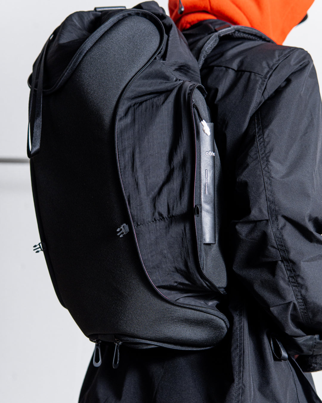 甲羅の構造を反映させたデザインのAvonは、ファスナーを開けることで収納容量を増やすことができるバックパックです。