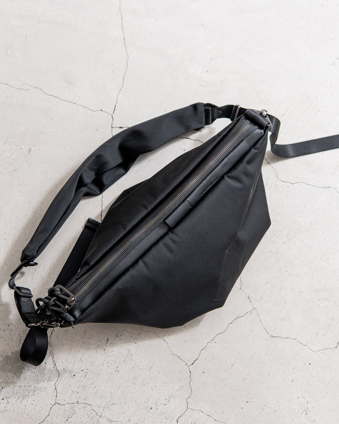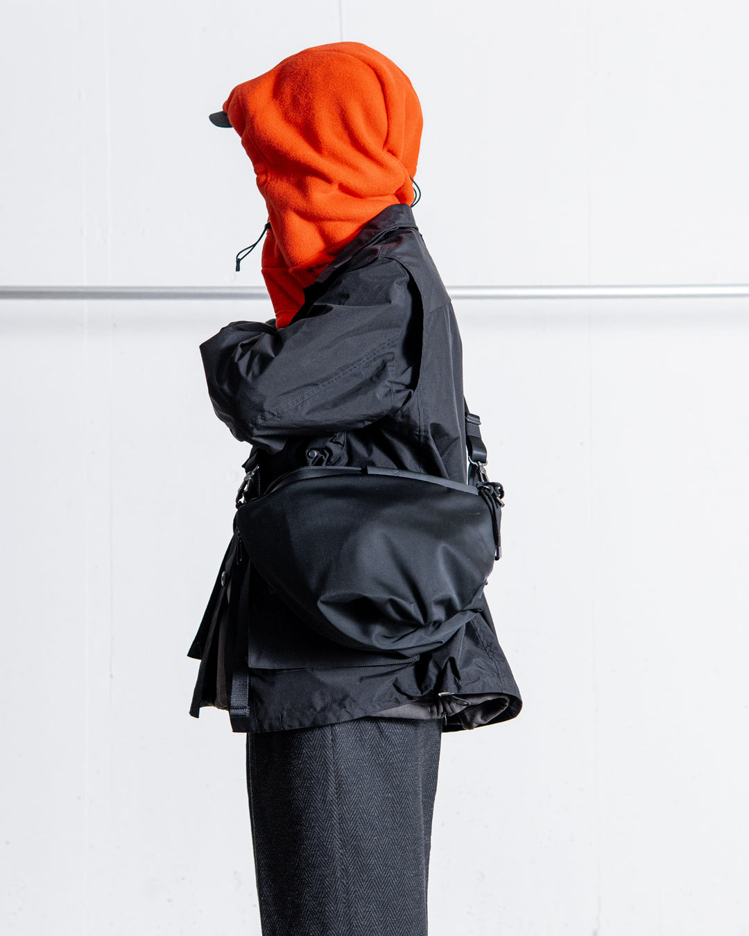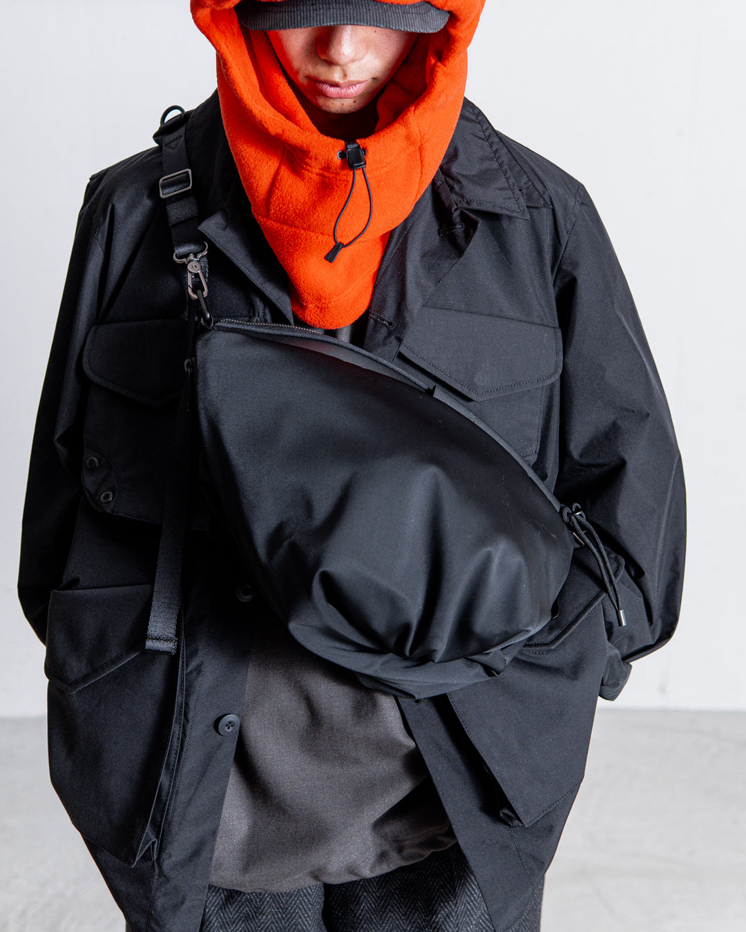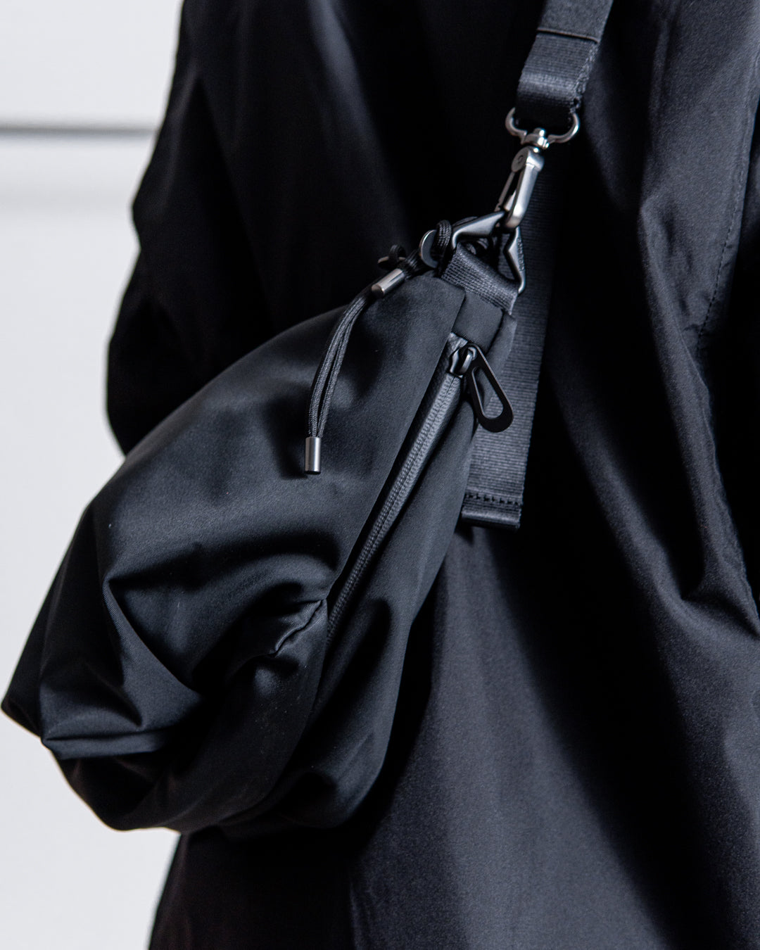ORNEは、上質なオニキス生地を使用し、柔らかな手触りと構造的なフォルムを兼ね備えています。底部に施された遊び心のあるひねりが動きを演出し、エレガントな折り目がバッグに質感を添えています。