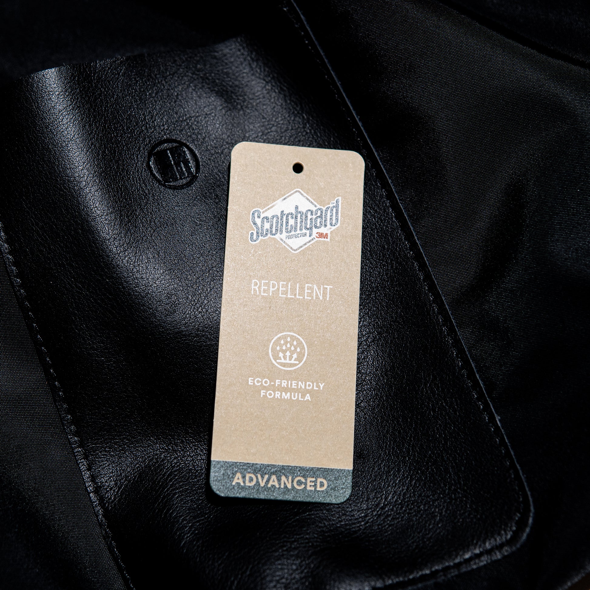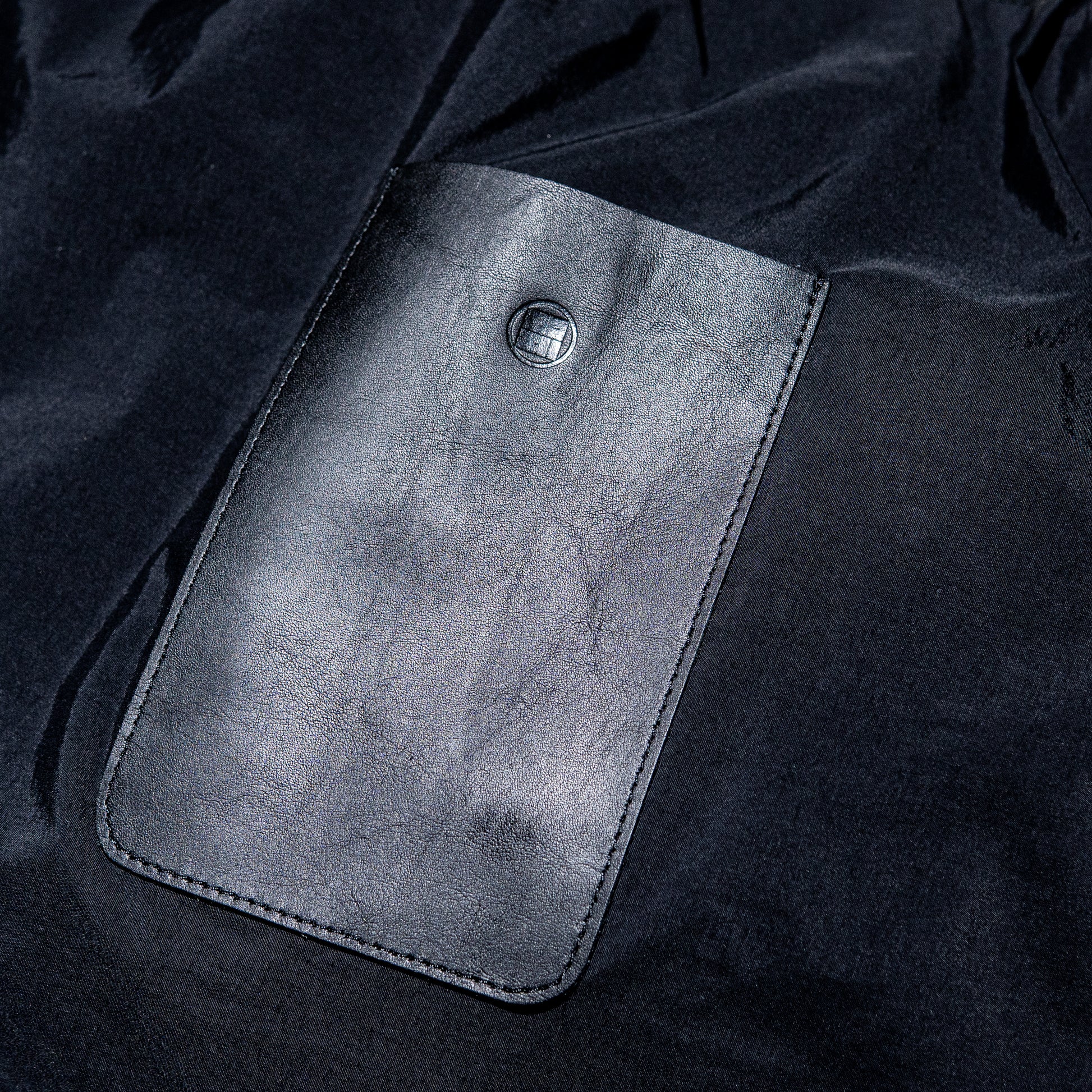 付属レザーには、兵庫県姫路市で製作されたオリジナルの防水レザーを使用。