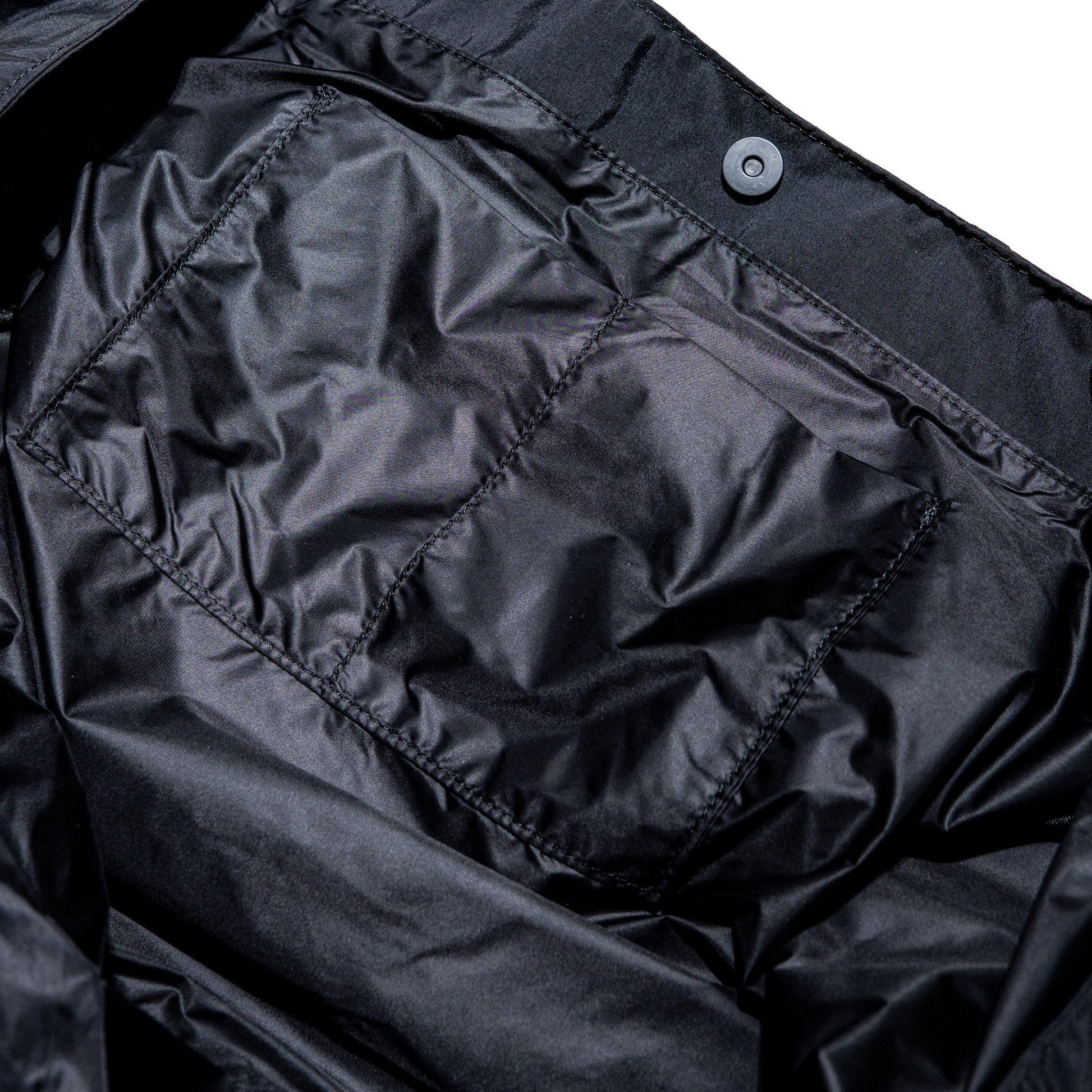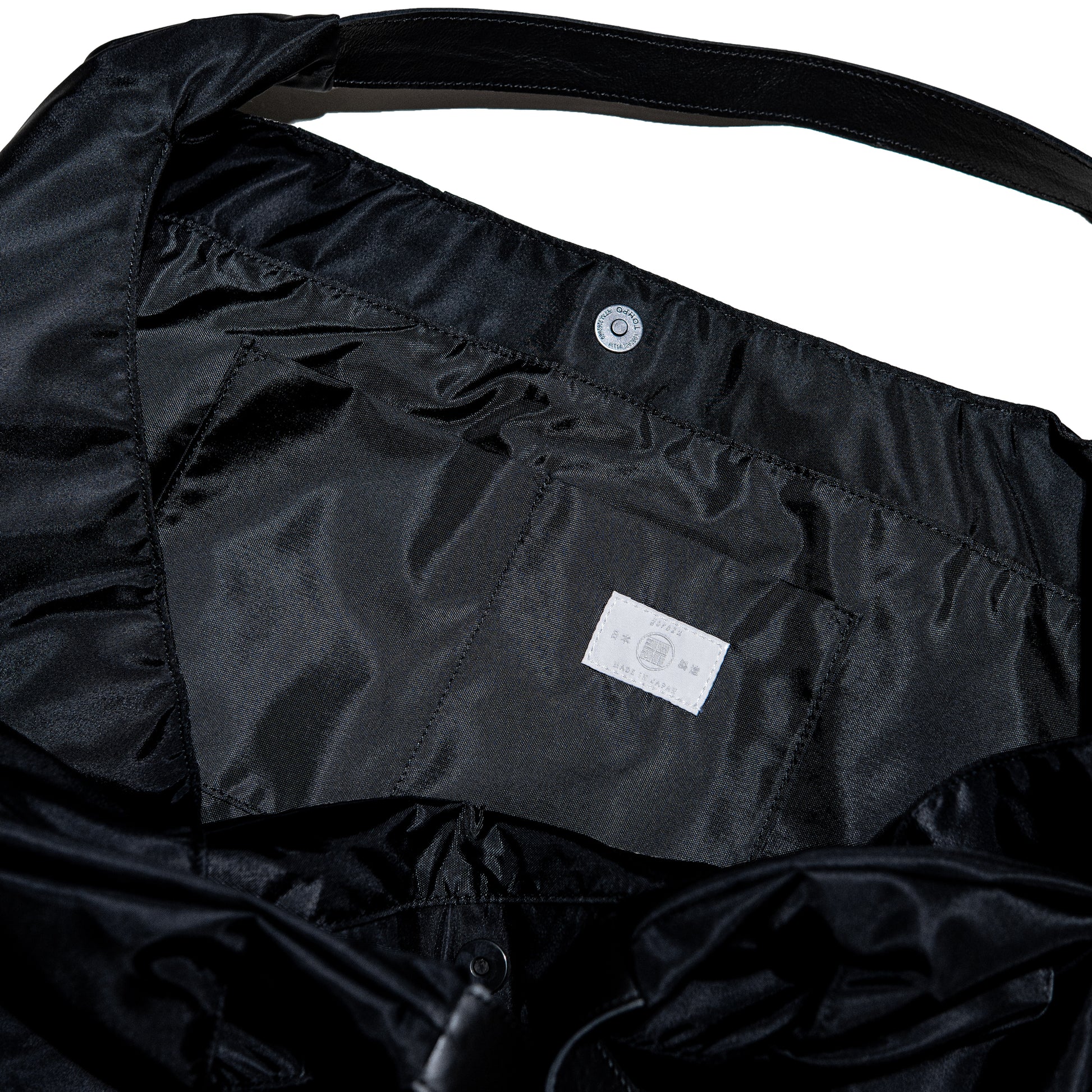 タックを入れることで立体的な表情を与え、平置きの状態では静かに、荷物を入れることで自然にフォルムが立ち上がる構造です。使うほどに形が整い、その人の使い方に沿った美しいシルエットが現れていきます。裏地には、テック系アウトドアウェアにも用いられる高強度の66ナイロンを使用しながら、あえて極薄に仕上げています。強度を確保しつつも軽やかで、表地・裏地ともに柔らかく、しなやかな質感が特徴です。