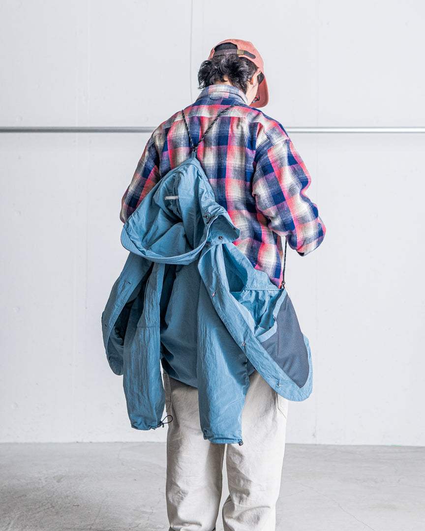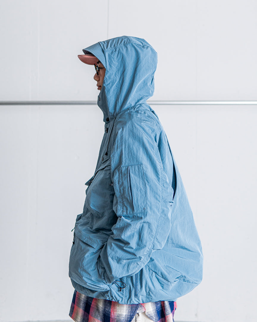 norbitの代表作であるFIELD JACKETのフード付きワイドシルエットジャケット。素材をW/R 塩縮ナイロンリップ素材に使用にリニューアルしました。撥水力と強度が全シリーズより大幅に改善されています。