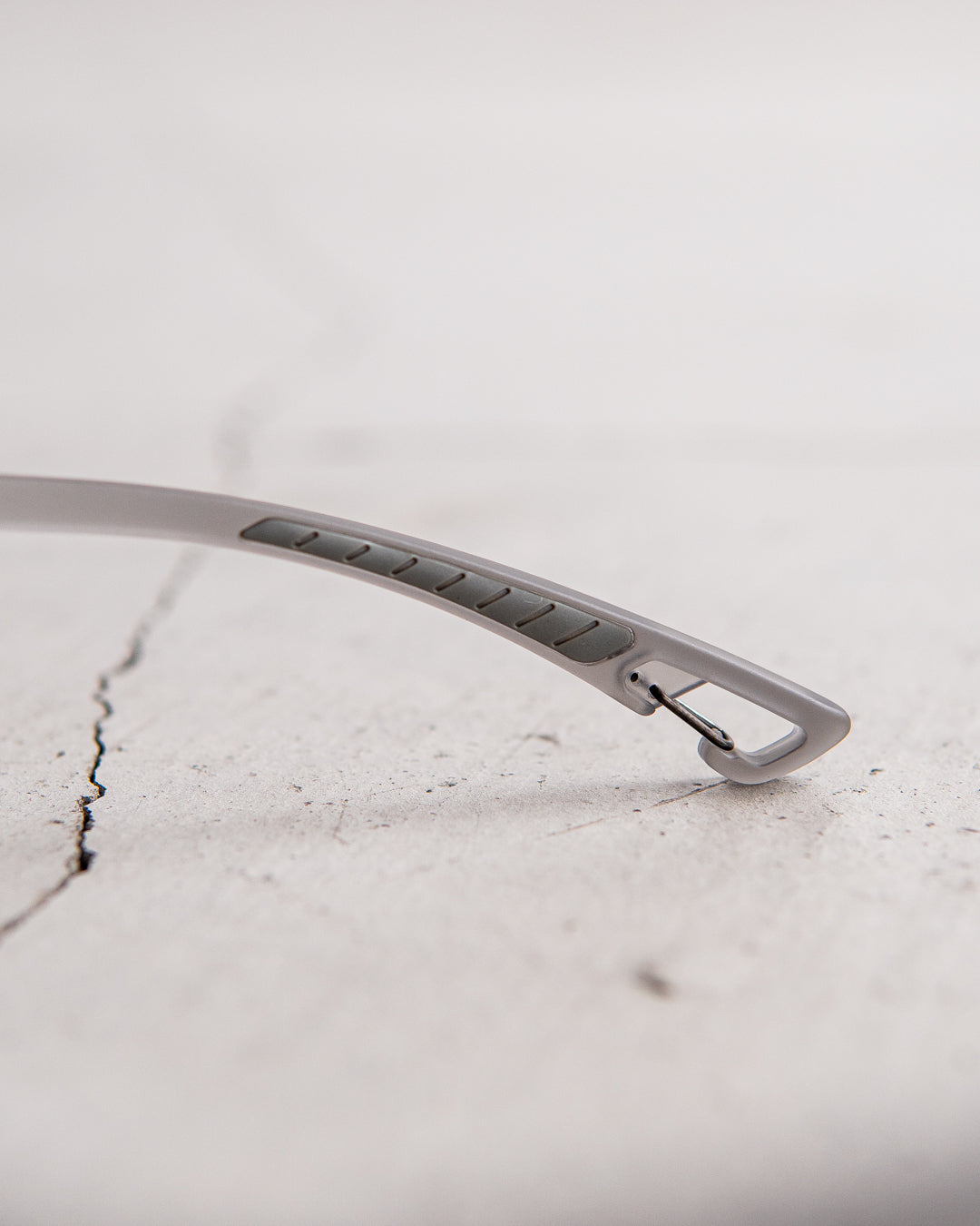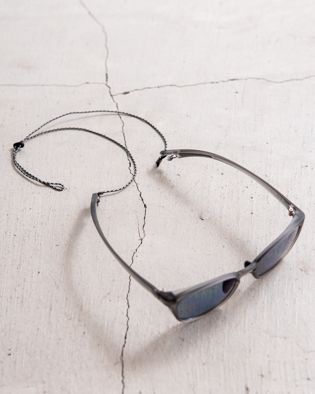 テンプル先はカラビナ形状になっていて、付属のグラスコードの取り付けが可能です。