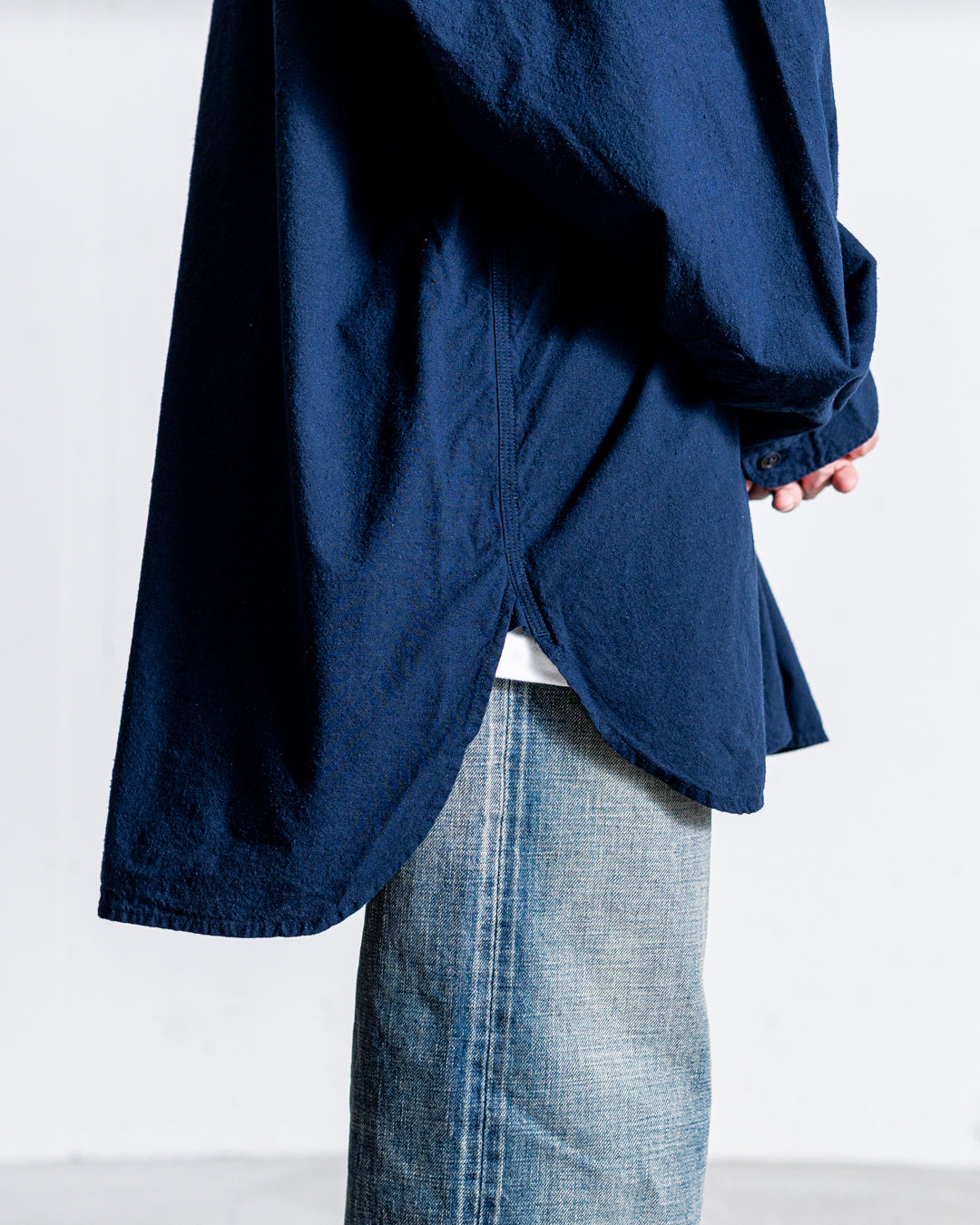 コットンシルクのネップ生地を使ったロングシャツ。