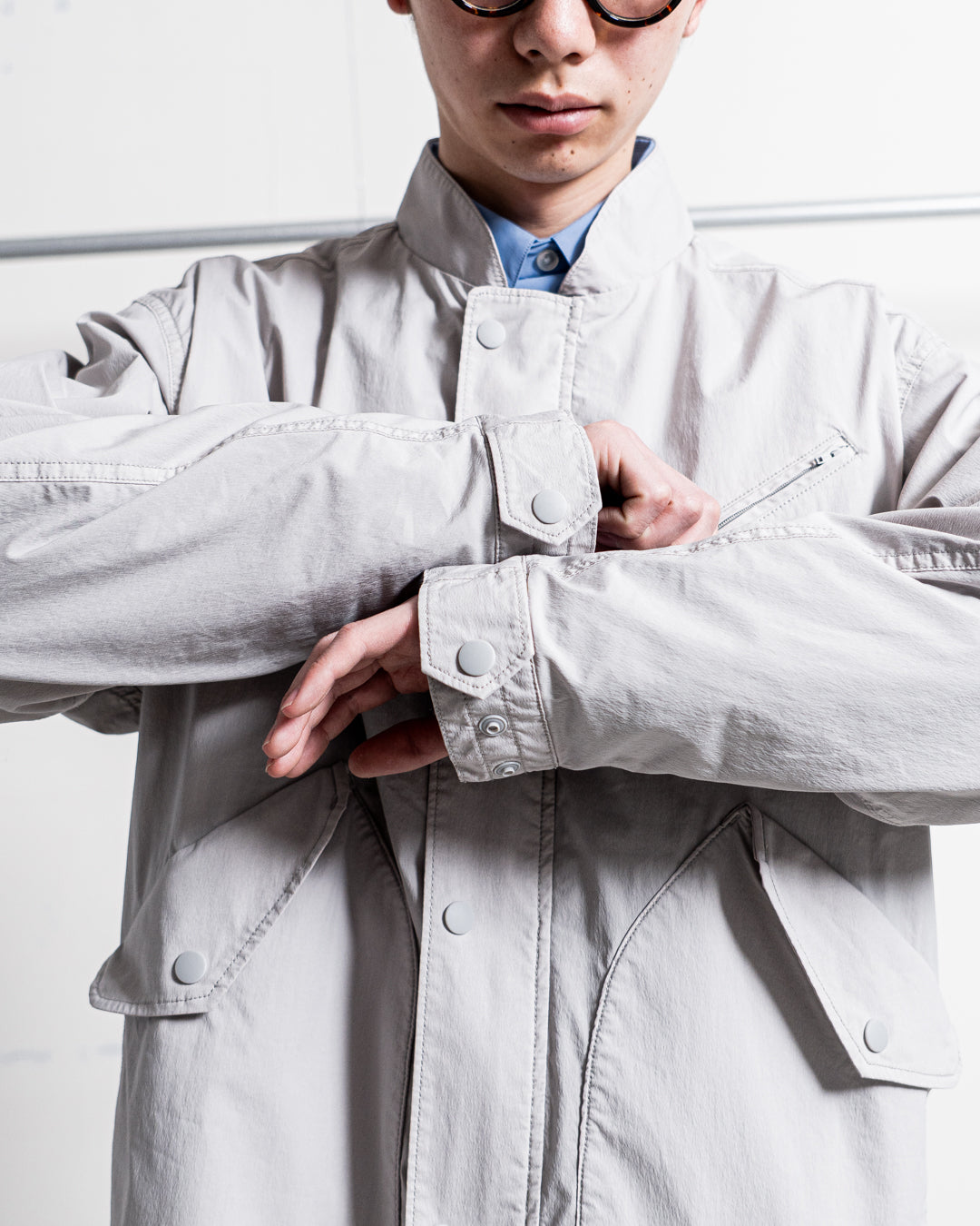 モデル 身長169cm 体重53kg / 着用SIZE L / 着用COLOR GREIGE PIGMENT