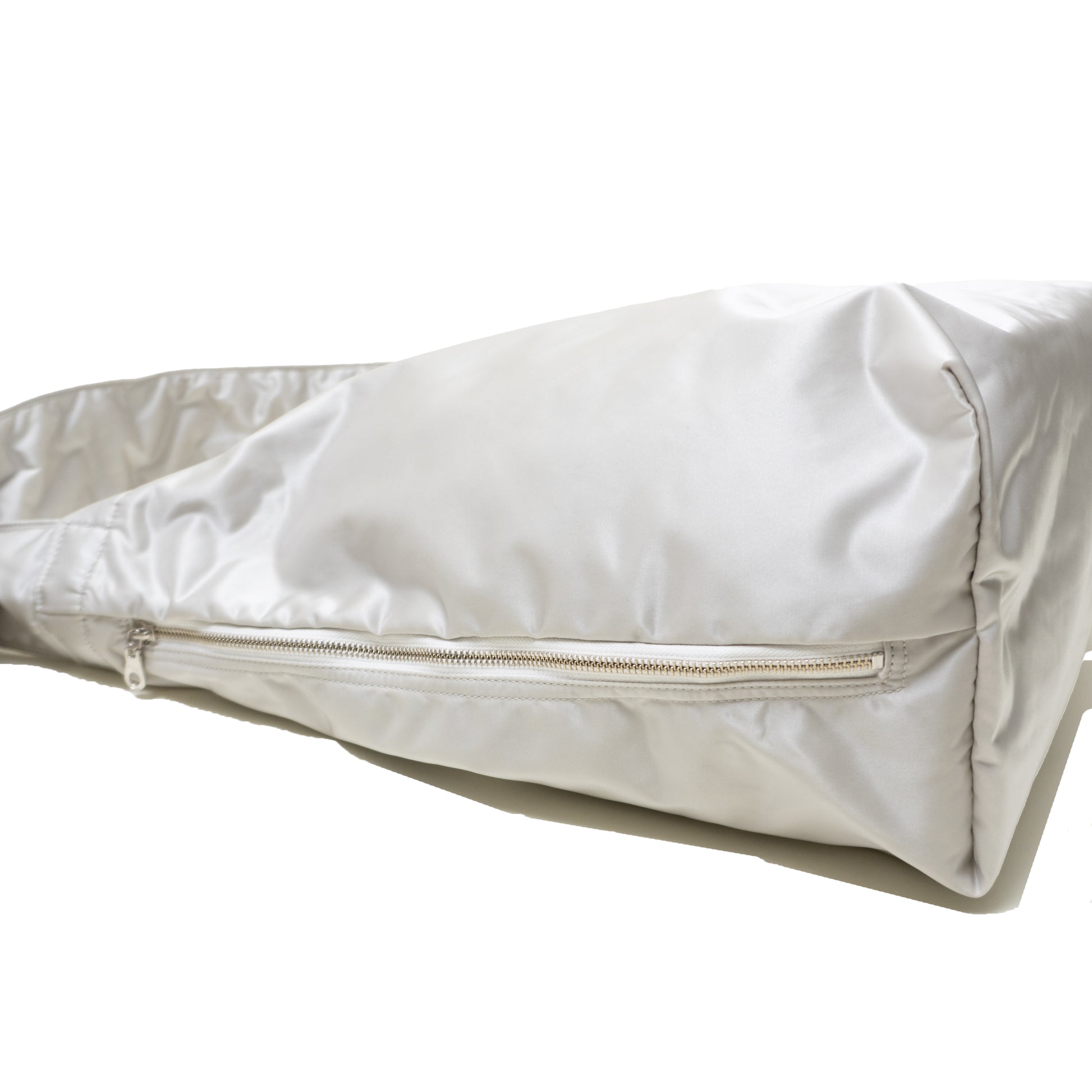 裏地にはタフタ生地を用い、その間にわたを挟み込んだボンディング仕様を採用。しっかりとした収納力を持ちながらも、荷物を包み込むような柔らかさと安心感のある持ち心地を実現しています。