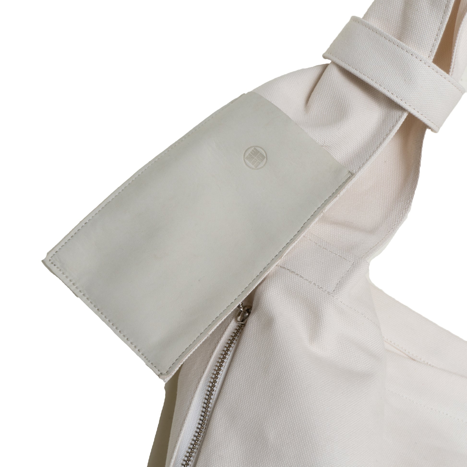 ショルダーストラップは幅110mmと、太い設計。視覚的なインパクトを持たせながら、重い荷物を入れた際も荷重を分散し、身体への負担を軽減します。