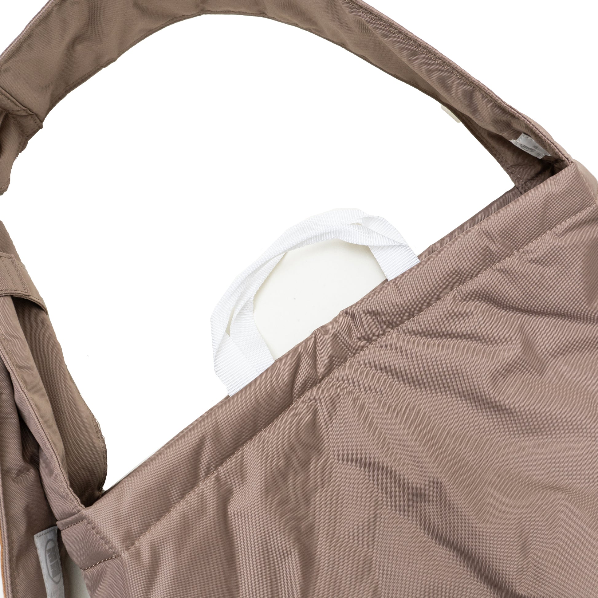 内装には持ち手を備え、ショルダーバッグとしてだけでなくトート型としての使用も可能。荷物量や移動距離に応じて、自然に持ち替えられる柔軟な使い方を想定しています。