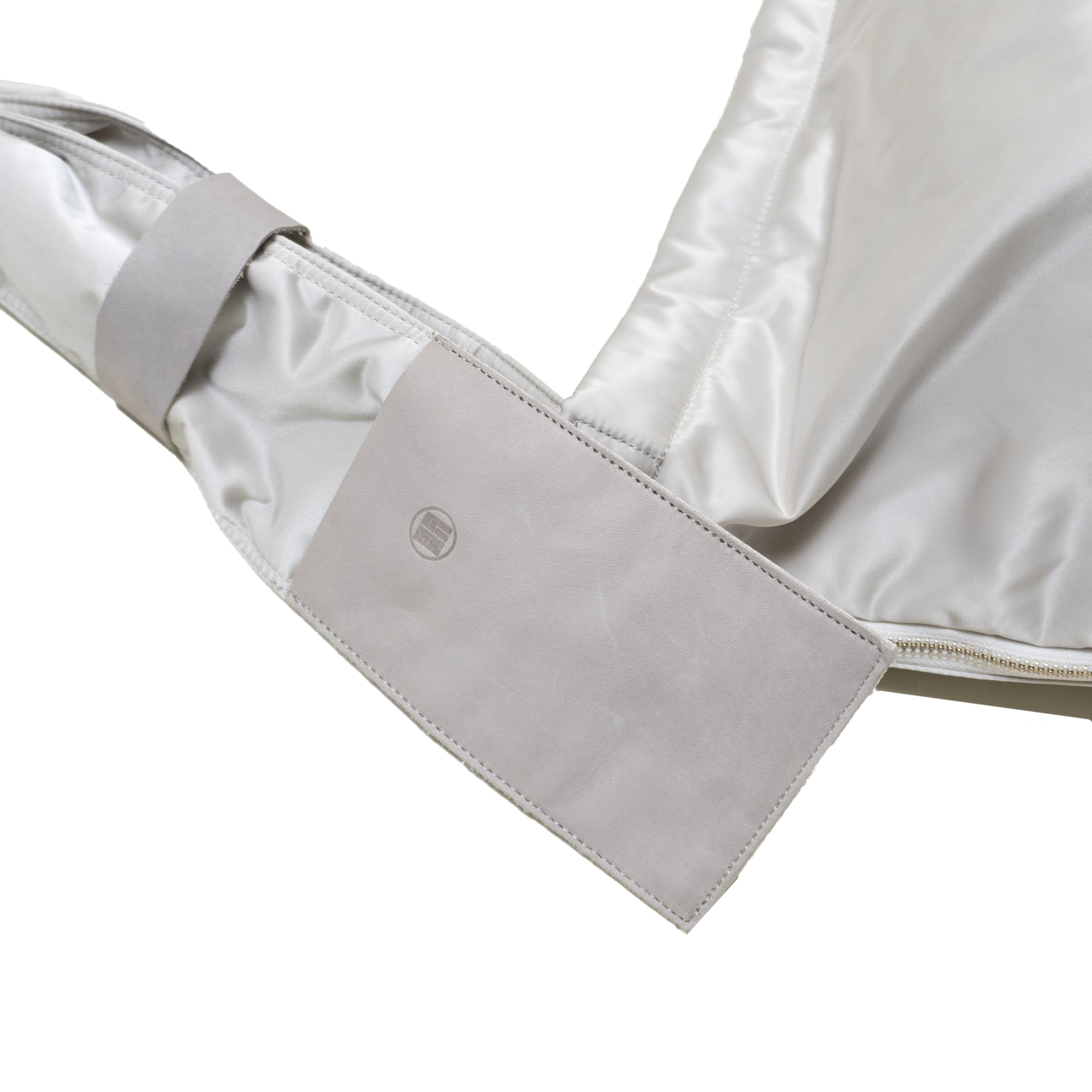 "TEFLON"テフロン加工を施したマットな表情のナイロン生地。ふっくらした中綿をタフタとの間に挟む、ボンディング加工を施した3層構造生地。身体に負荷がかかりにくく、馴染みやすいです。軽量化かつ、雨、防汚性、にも強い素材。付属のレザーは微起毛素材である日本製ヌバックを採用しております。ヌバックレザーとは牛革の銀面をバフ研磨したモノです。質感としては滑らかで、手触りがよく、温かみがあります。時間と共に、エイジングを楽しんでいただけます。