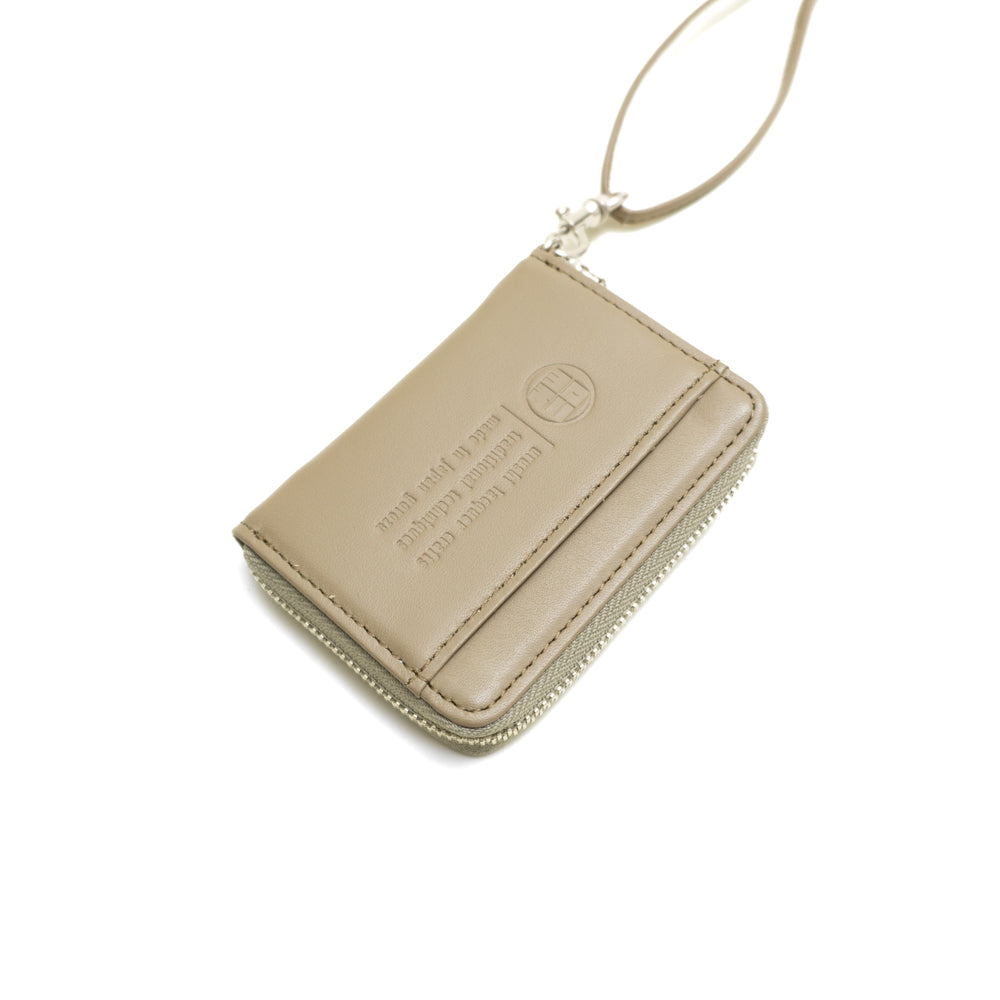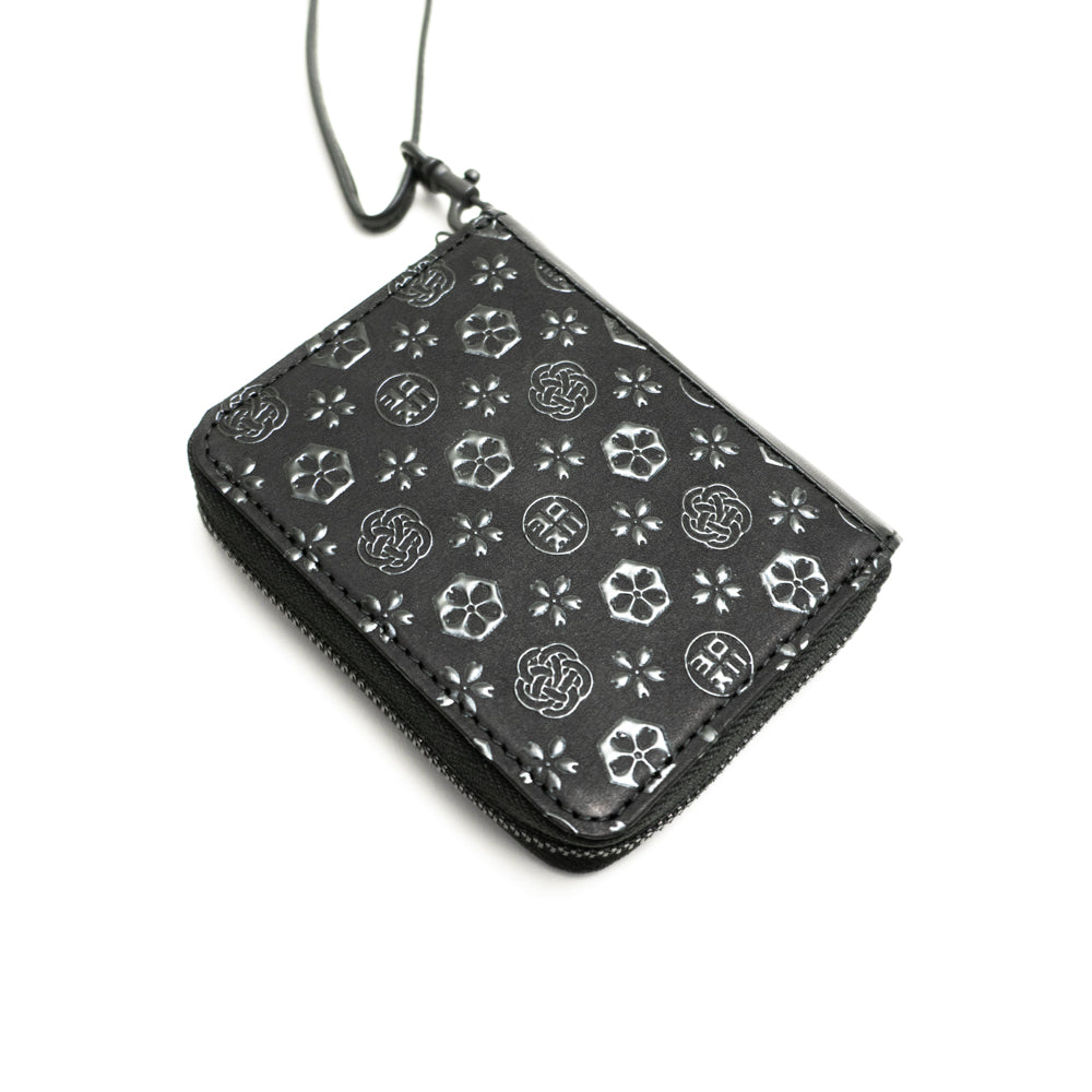 日本製の上質なヌバックレザーに、熟練した職人の手仕事によって漆を施したラウンド型のミニマルウォレット。