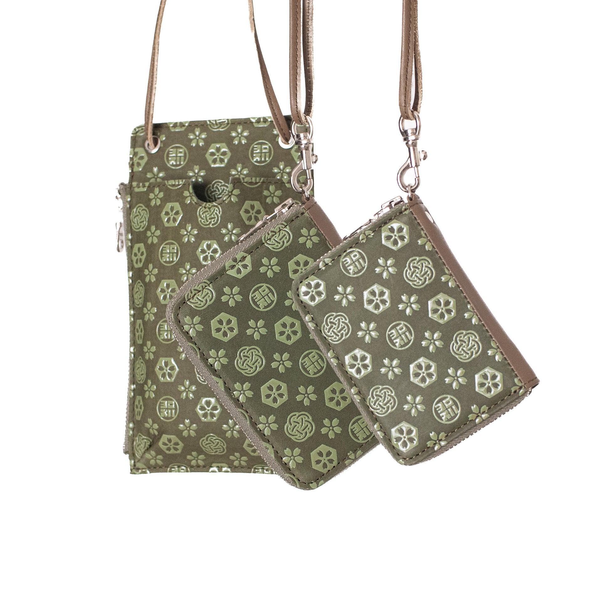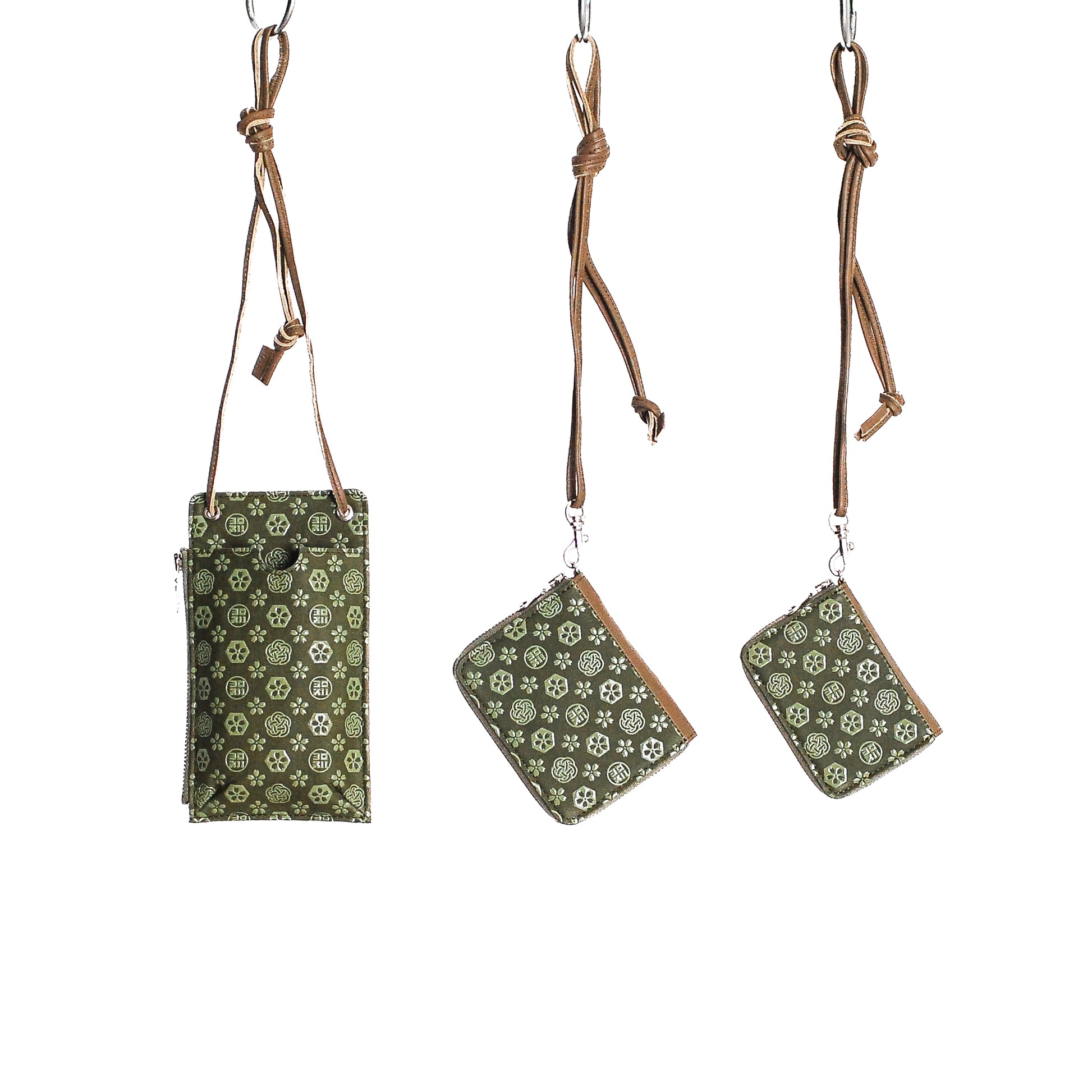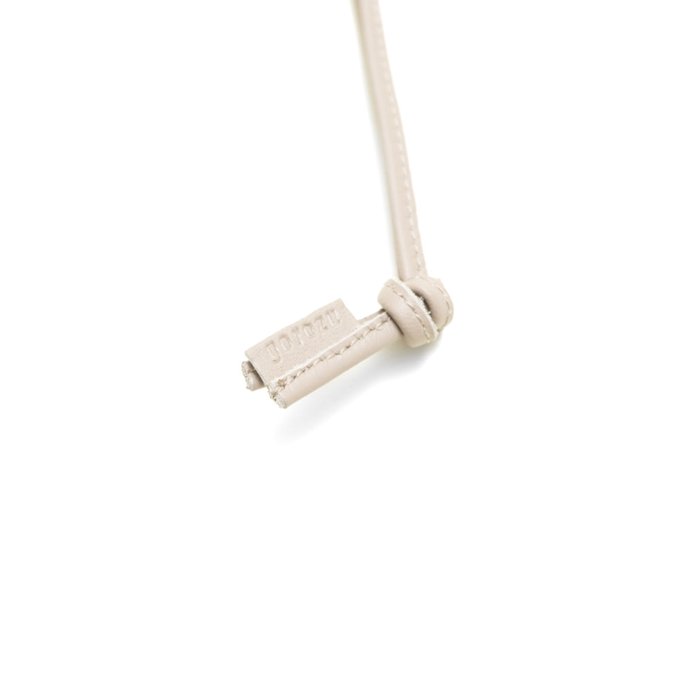 革紐は結ぶことで長さ調節ができ、結び目にはメガネやキーホルダーなどを掛けることも可能。使い方に余白を持たせた仕様です。ショルダーの剣先部分には、yorozuの素押しを施しています。