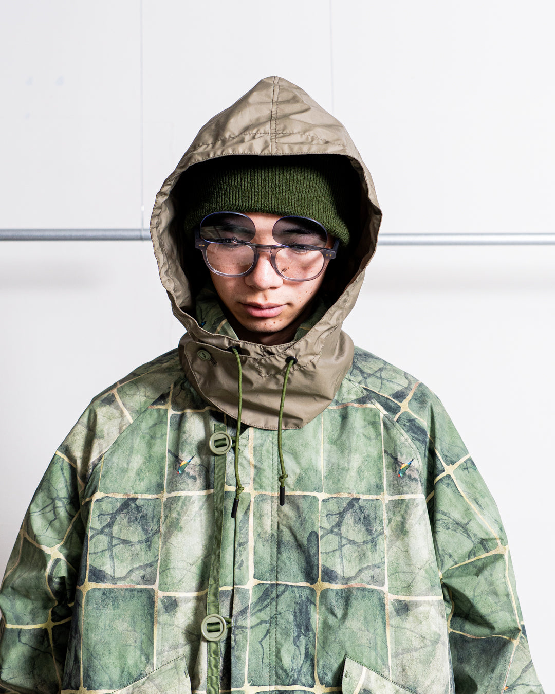プリント柄は森の木々をスクエアで切り取り、自然と都会をシームレスに繋ぐnowartt別注のデザイン。
