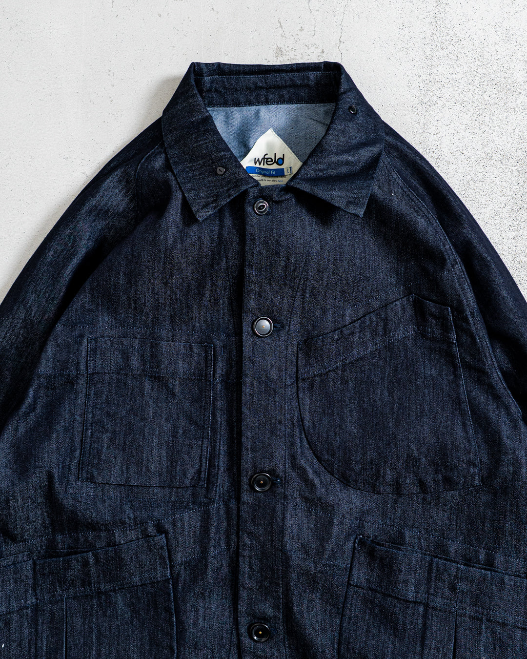 ゆったりとしたシルエットで、やや短めに仕上げたカバーオールは、リラックス感のある着こなしにぴったり。フロントには、糸切れの心配が少ないチェンジボタンを採用。