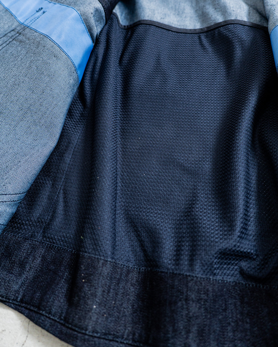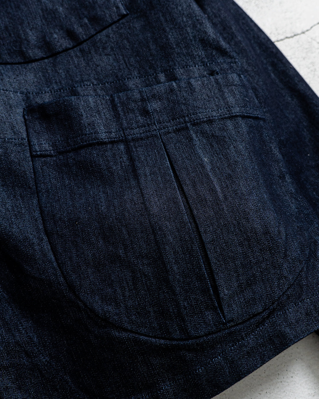 ソロテックス糸とコットンから構成されるハイブリッドのライトオンスデニムを使用。軽やかな風合いと快適な着心地が特徴です。