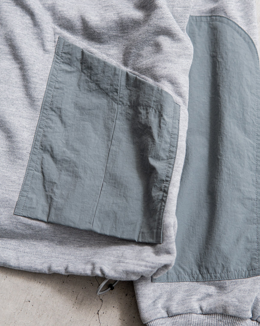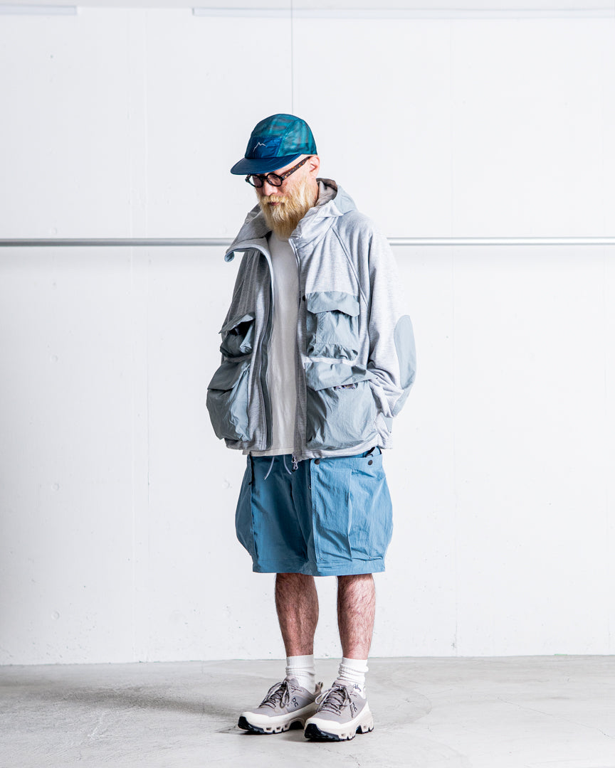 ベース素材にはT/Cフレンチテリー、ポケット部には塩縮ナイロン素材と用途別に素材を使い分けた強度と速乾性に優れたアイテム。