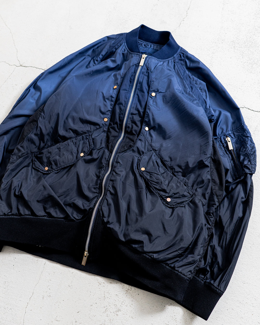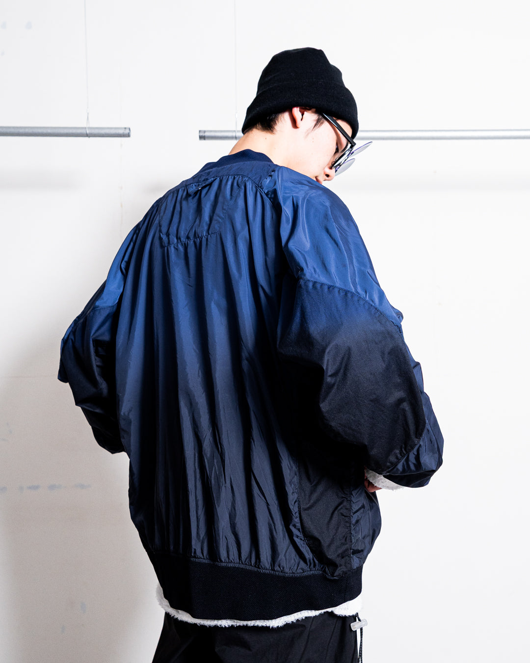 グラデーションを製品染めで表現したMA-1タイプのブルゾンです。
