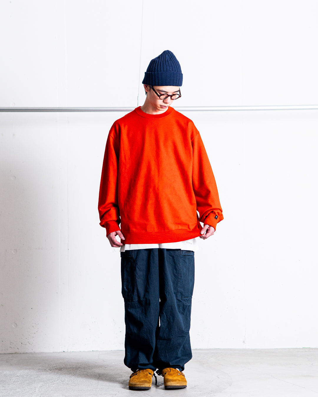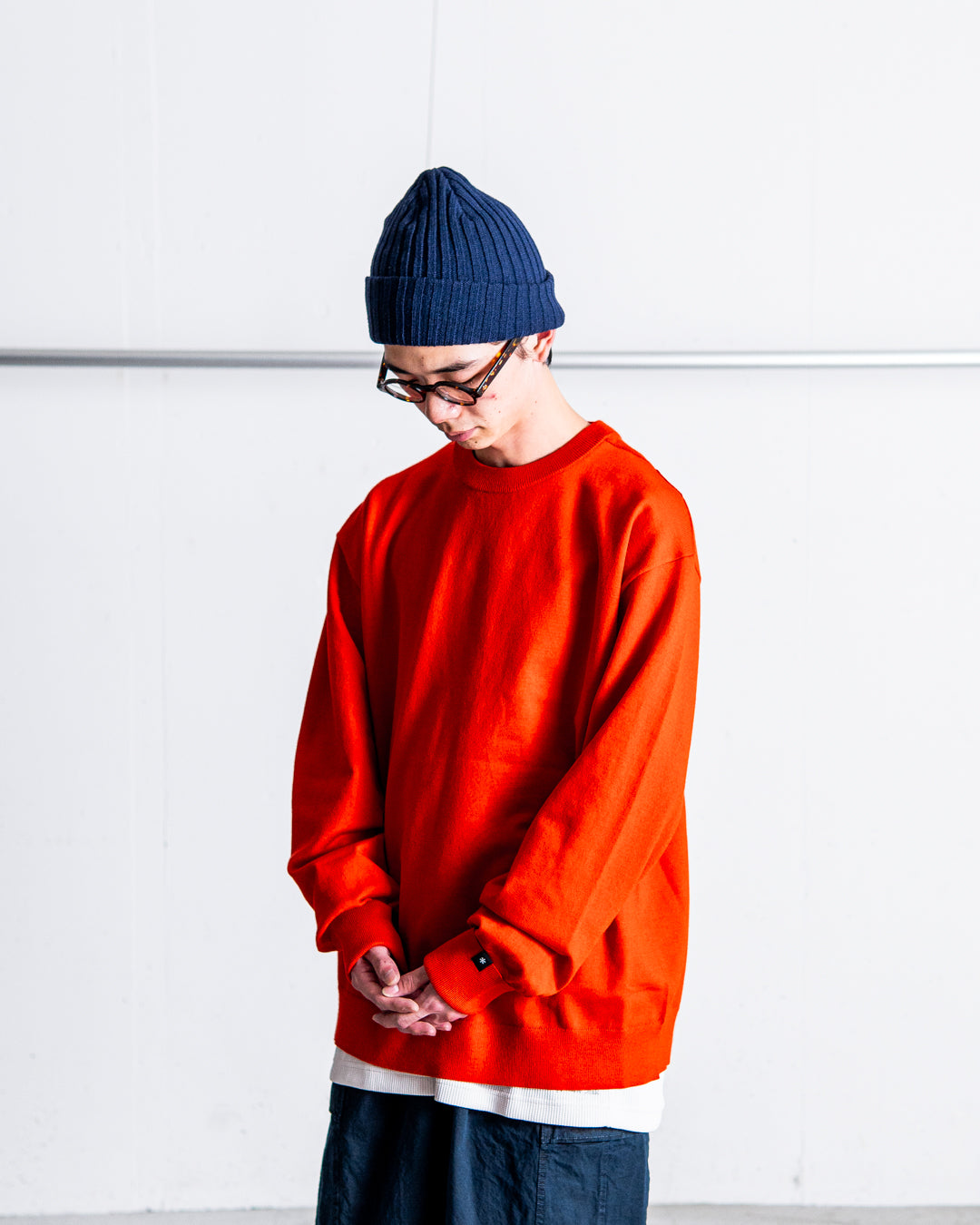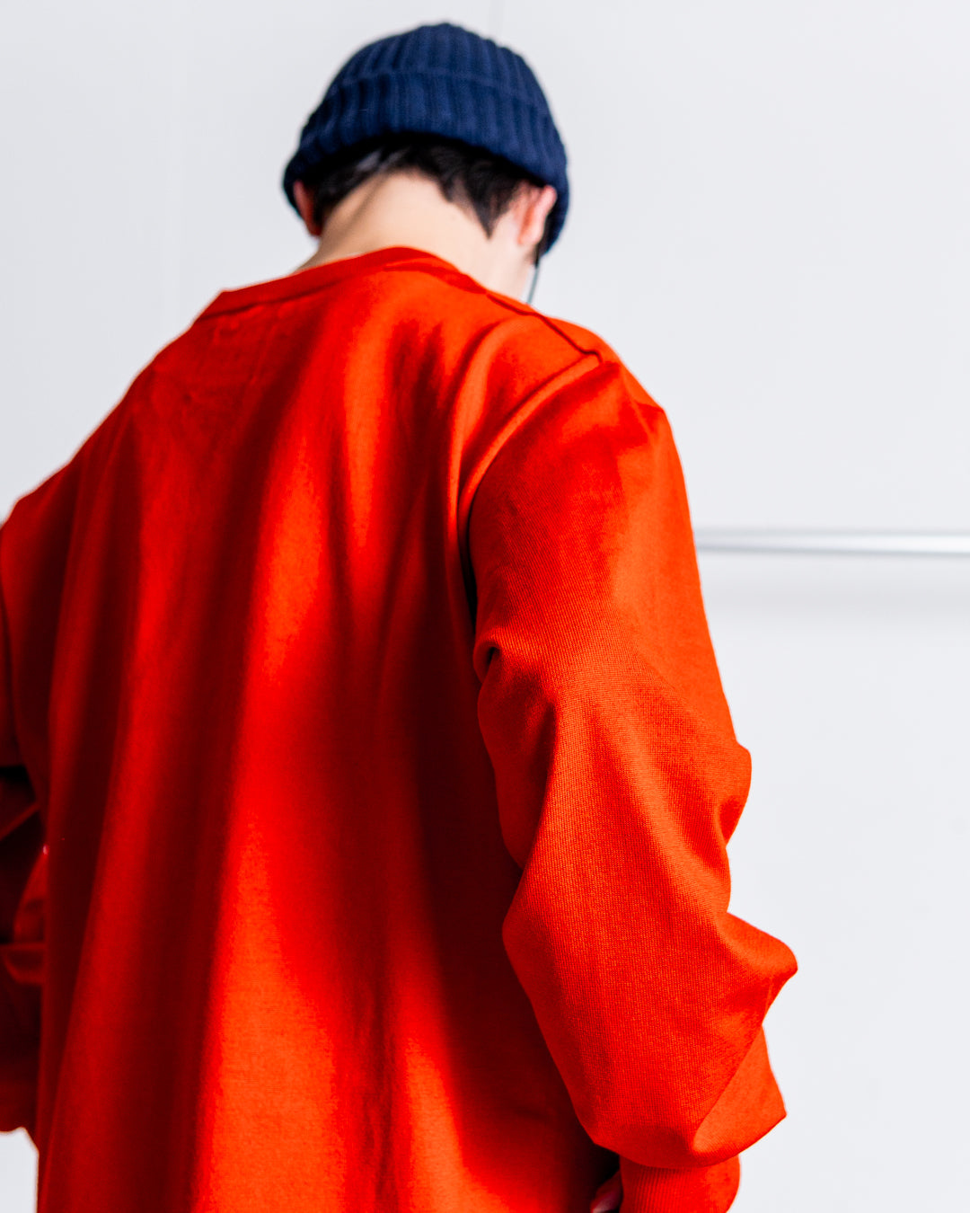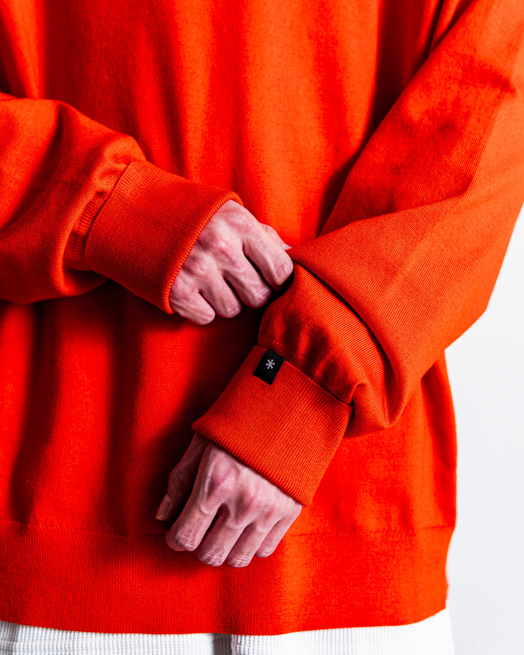 しっかりと目の詰まった衿のリブ編みは、繰り返しの洗濯にも耐え、型崩れしにくいのがポイント。袖口は、折り返し仕様となっており、手の甲まで暖かくグローブいらずのサムホール付きです。肩には、ヴィンテージのミリタリーセーターによく見られるガゼットを配置。また、肩部分には、肌あたりを軽減するため特殊なリンキング加工が施されています。