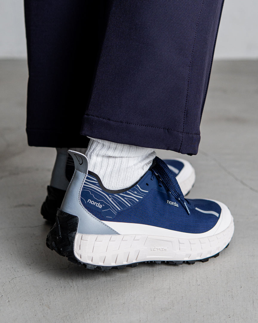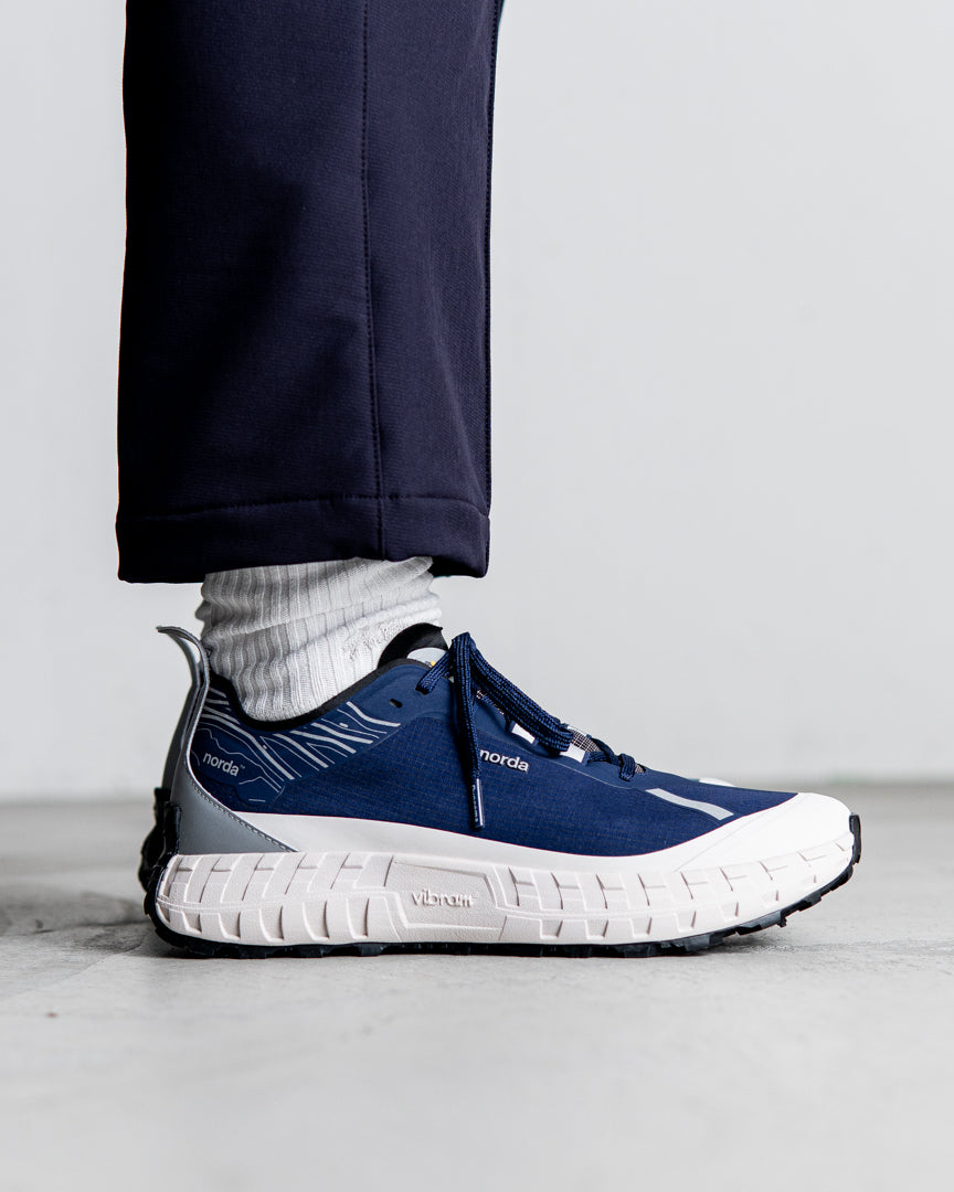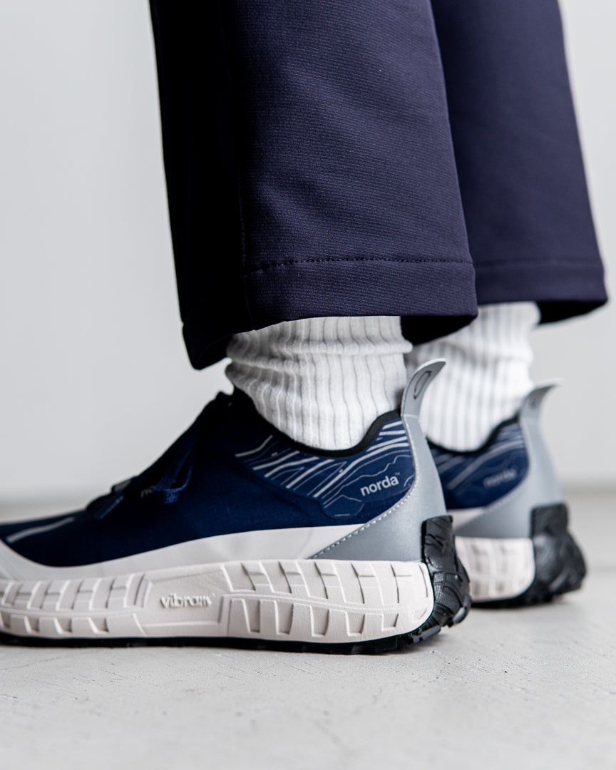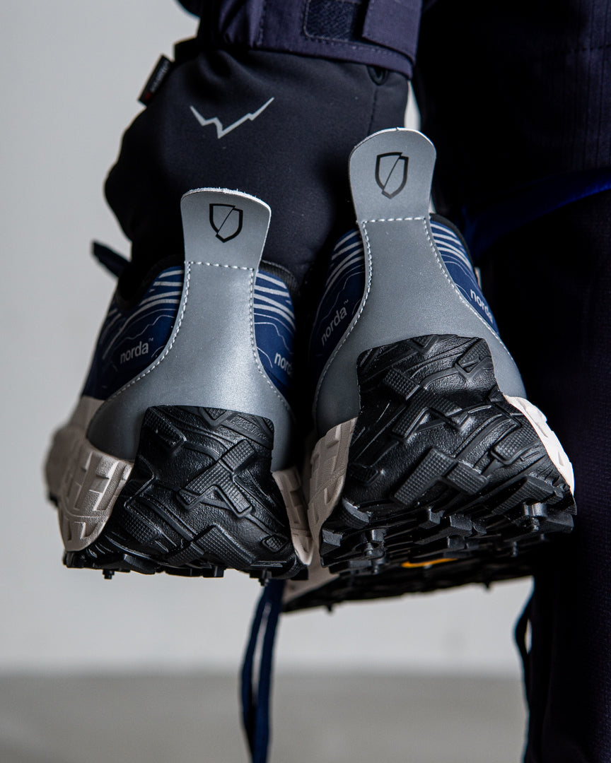 nordaTMとVibram®は最高のパフォーマンスを発揮するトレイルソールを開発するため、 デザインコラボレーションを行い、これまでの限界を超える依頼をVibramチームは実現しました。Vibram® x nordaTMソールは、地球上で最大のカンブリア紀以前の岩層であるカナダの岩盤にインスパイアされています。 ミッドソールにはVibram® SLEを採用し、 最軽量かつ最高の反発性能を実現し、 同時にクラス最上級のクッション性と耐久性を誇ります。 norda 001は、最高級の部品からなるランナーによるランナーのためのシューズなのです。