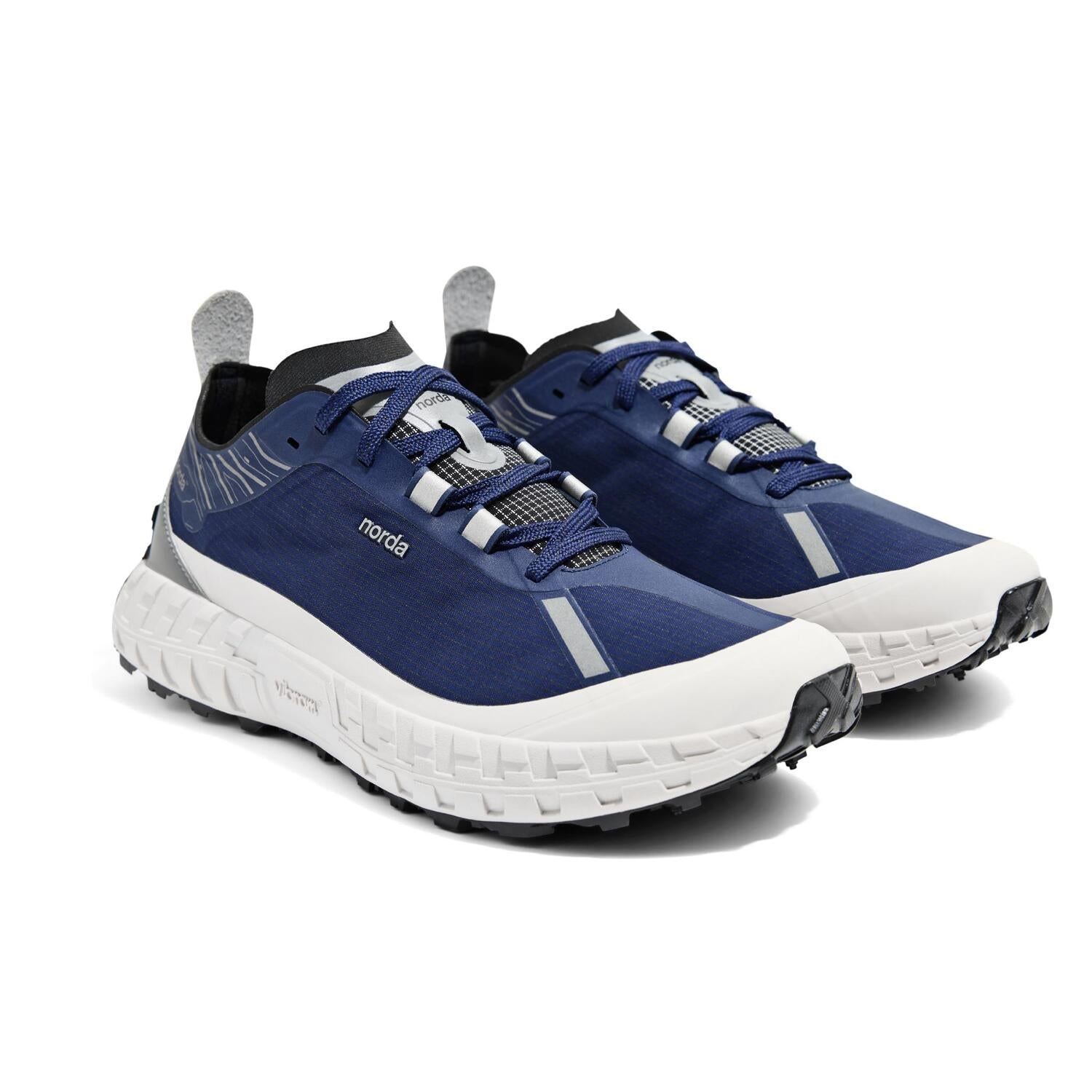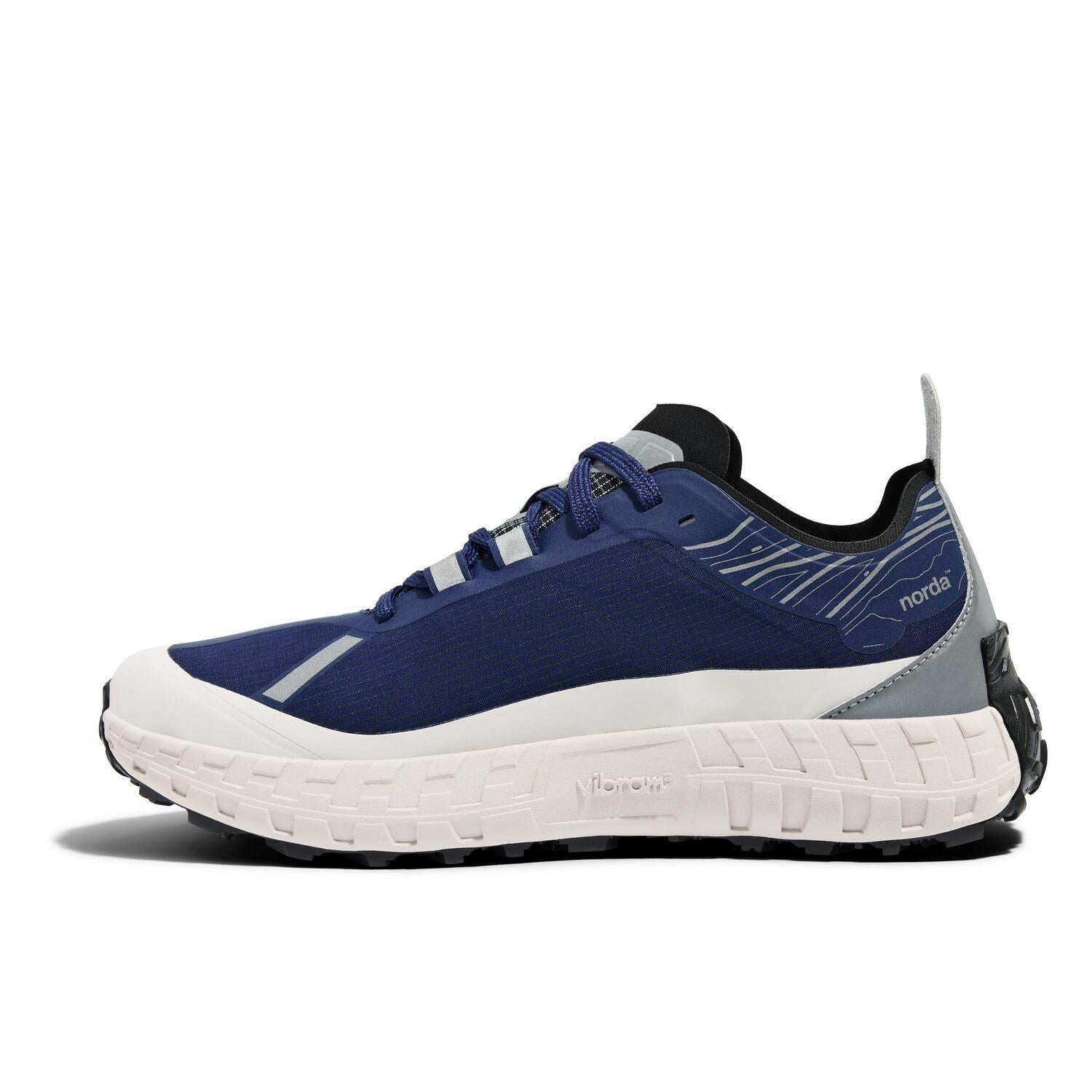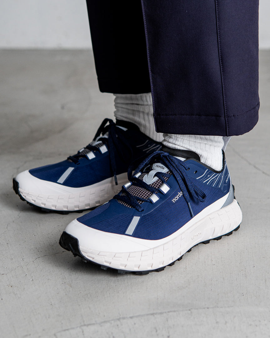 nordaTMとVibram®は最高のパフォーマンスを発揮するトレイルソールを開発するため、 デザインコラボレーションを行い、これまでの限界を超える依頼をVibramチームは実現しました。Vibram® x nordaTMソールは、地球上で最大のカンブリア紀以前の岩層であるカナダの岩盤にインスパイアされています。 ミッドソールにはVibram® SLEを採用し、 最軽量かつ最高の反発性能を実現し、 同時にクラス最上級のクッション性と耐久性を誇ります。 norda 001は、最高級の部品からなるランナーによるランナーのためのシューズなのです。