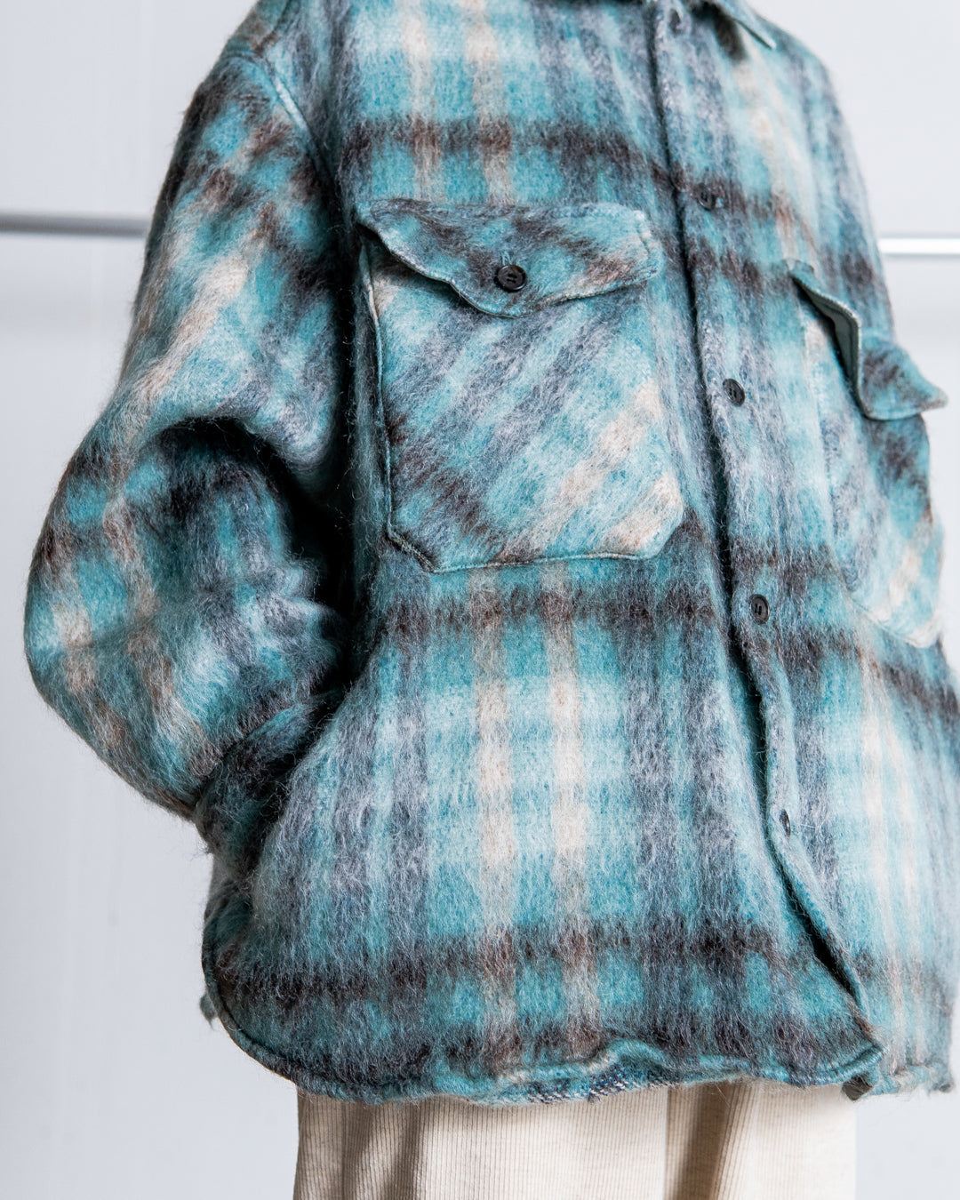 暖かさと軽さが特徴の上質な生地を使用した定番のCPOシャツジャケット。ウール特有のシャギー感とファーのような毛並みで軽くて暖かい。ゆとりのあるサイズ感ながら、ソフトで軽量な着心地が特徴です。