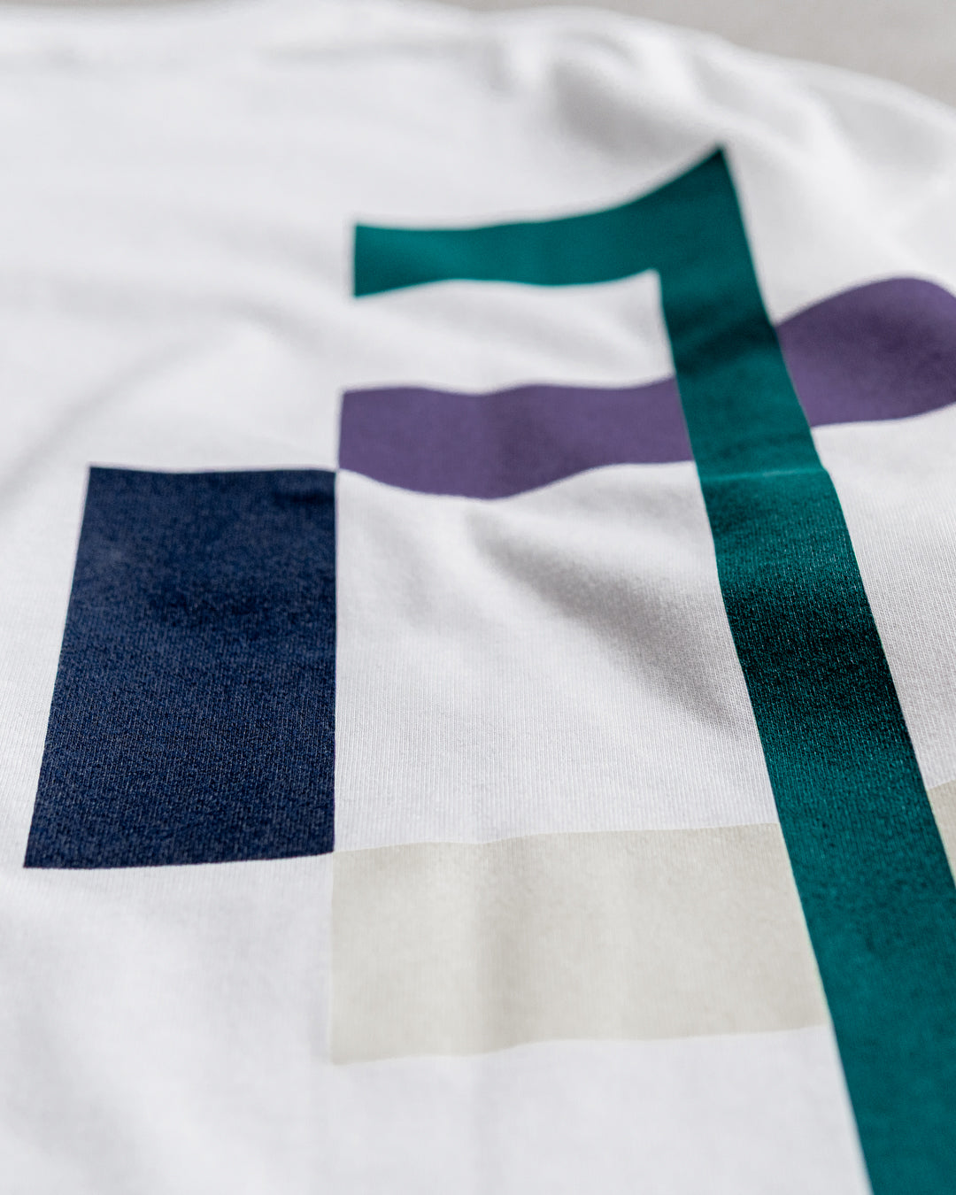 白でも透け感のない、程よい肉感としなやかさを 持つボディーに、オリジナルのグラフィックを 施したプリントTシャツ。 今シーズンのソックスとリンクする オリジナルグラフィックを配しました。